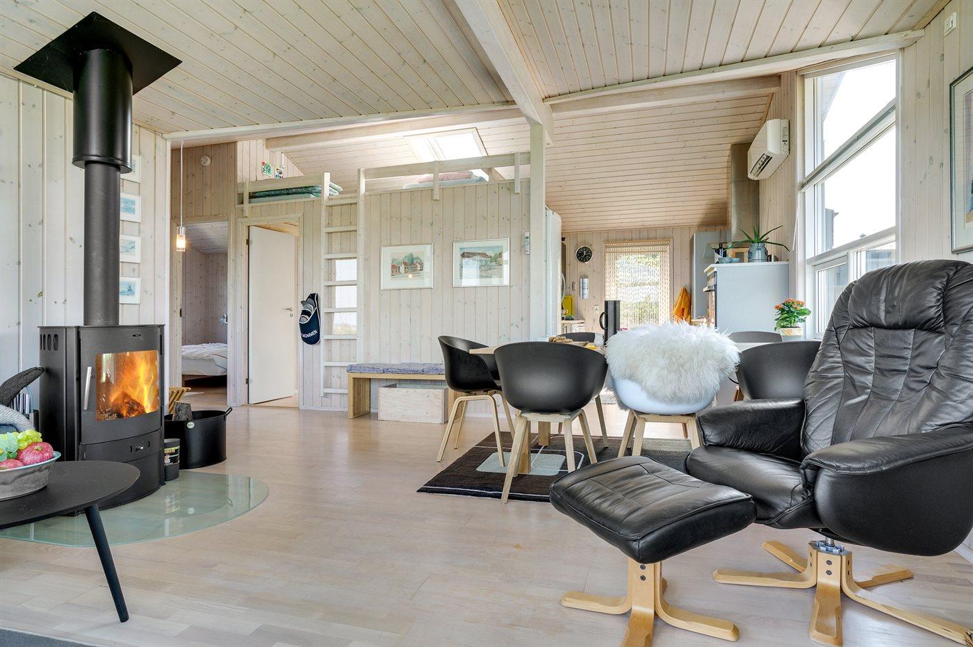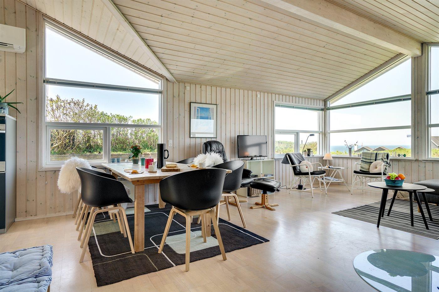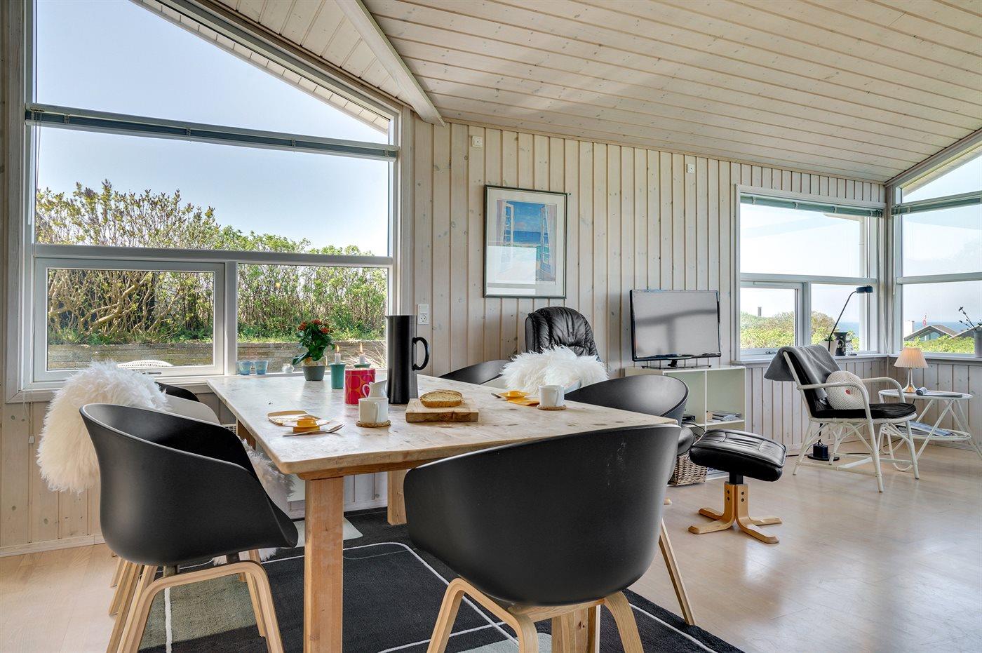 Et velbeliggende sommerhus i gåafstand til Lønstrup by og med dejlig udsigt til vandet. Sauna med adgang fra terrasse og med udsigt til Hirtshals Fyr Der er skøn terrasse rundt om huset med mulighed for både sol og læ. Bemærk: Huset er indrettet med hems, hvor 2 af de i alt 6 sovepladser befinder sig.