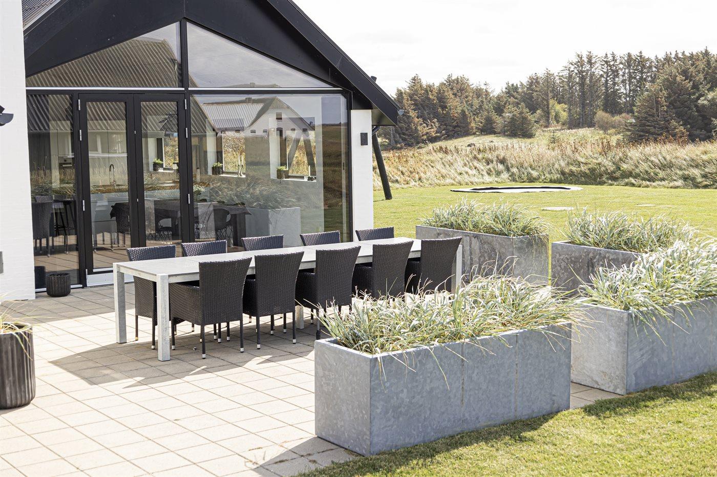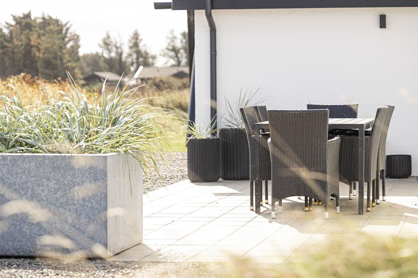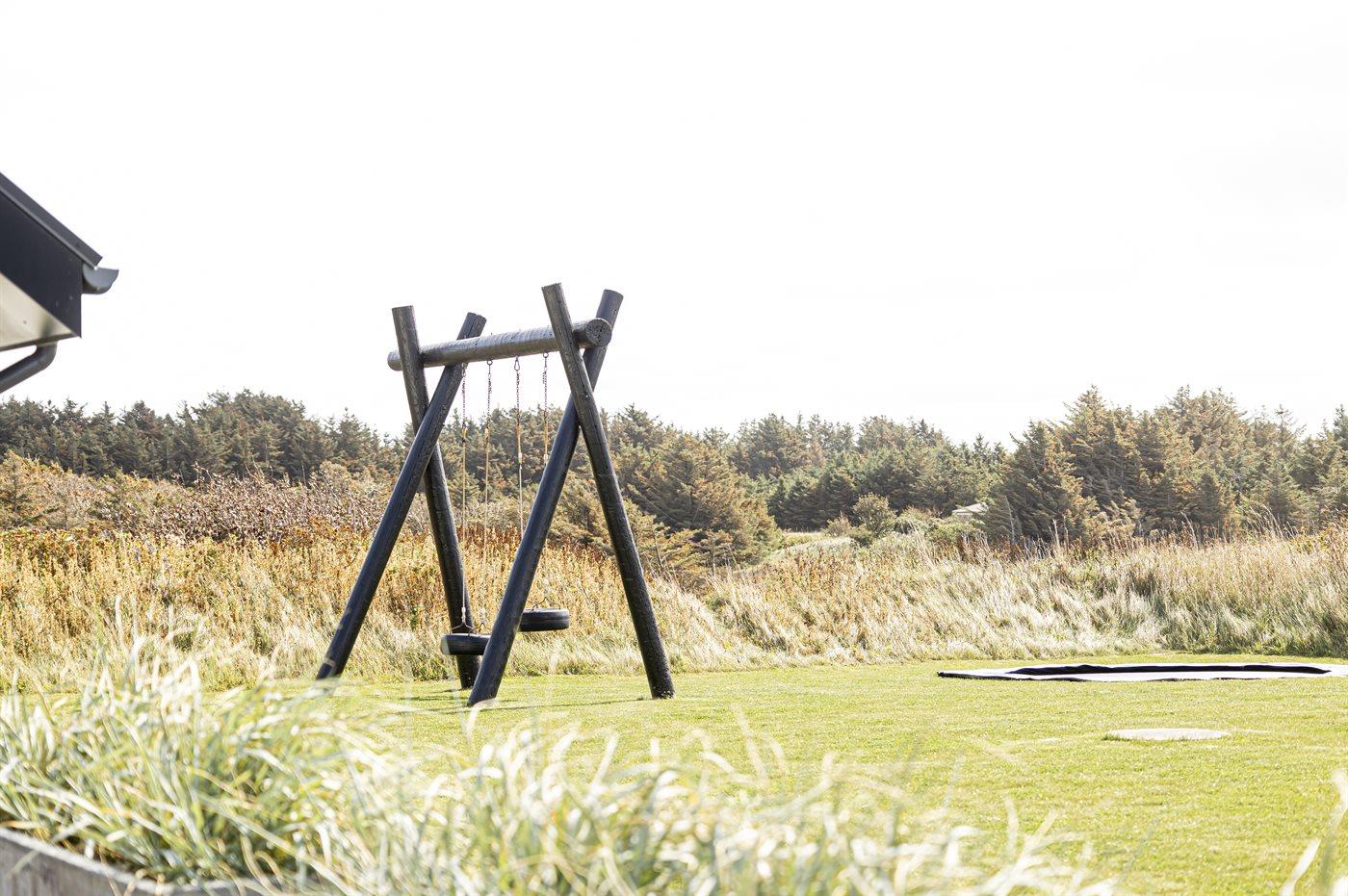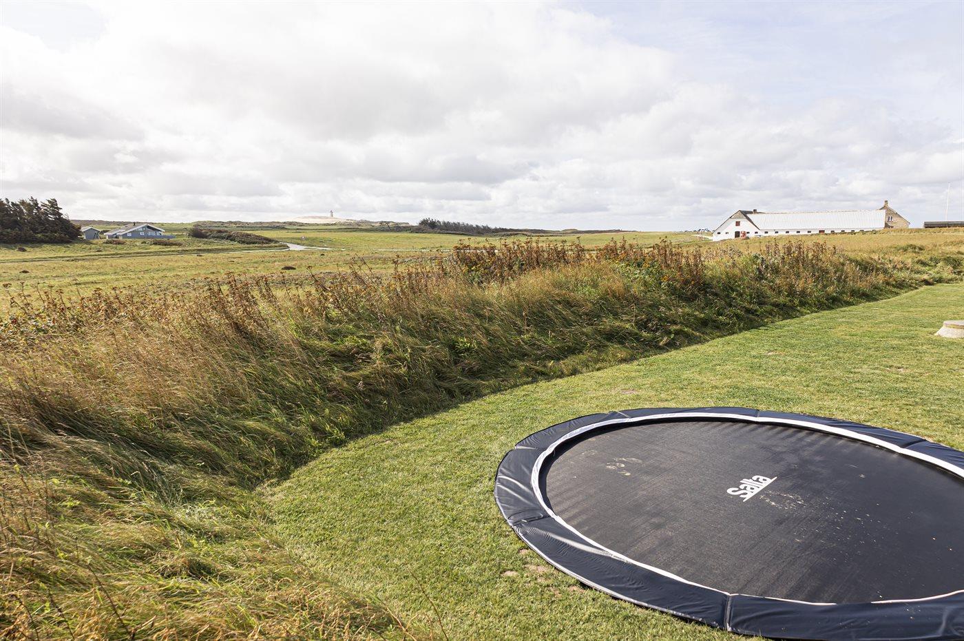 Ferieboligen er beliggende på en 1250 m² stor naturgrund. Der er 250 m til havet. Nærmeste forretning er beliggende i en afstand af 800 m. Til ferieboligen hører 100 m² terrasseareal. Der er installeret stik til opladning af elbil. Parkering ved ferieboligen.