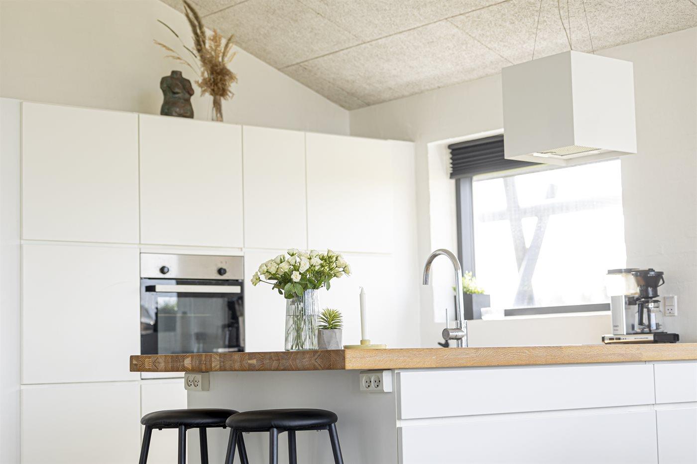 Køkkenet er udstyret med 1 køleskab. Der er 4 induktionskogeplader, varmluftovn samt opvaskemaskine.