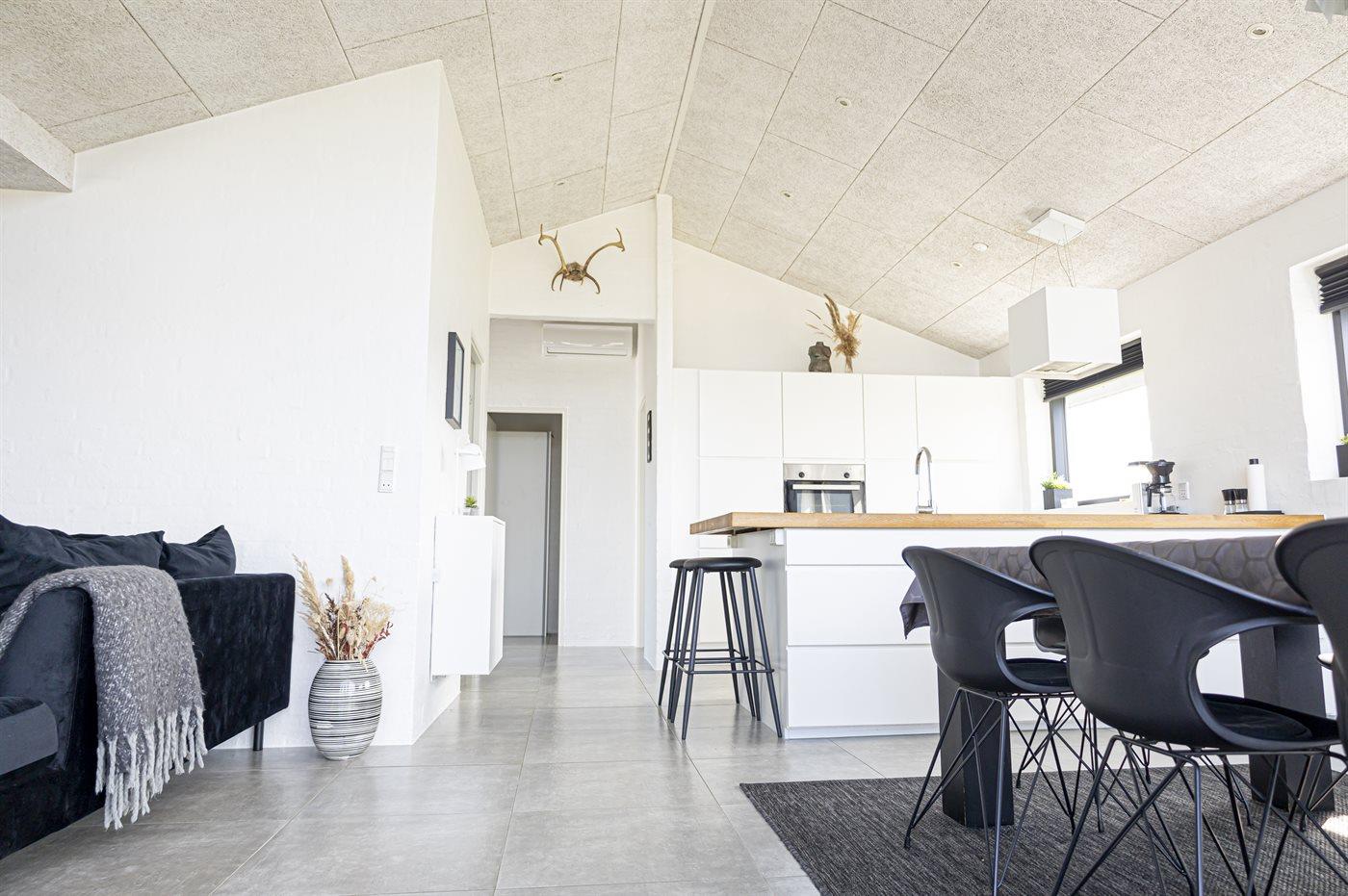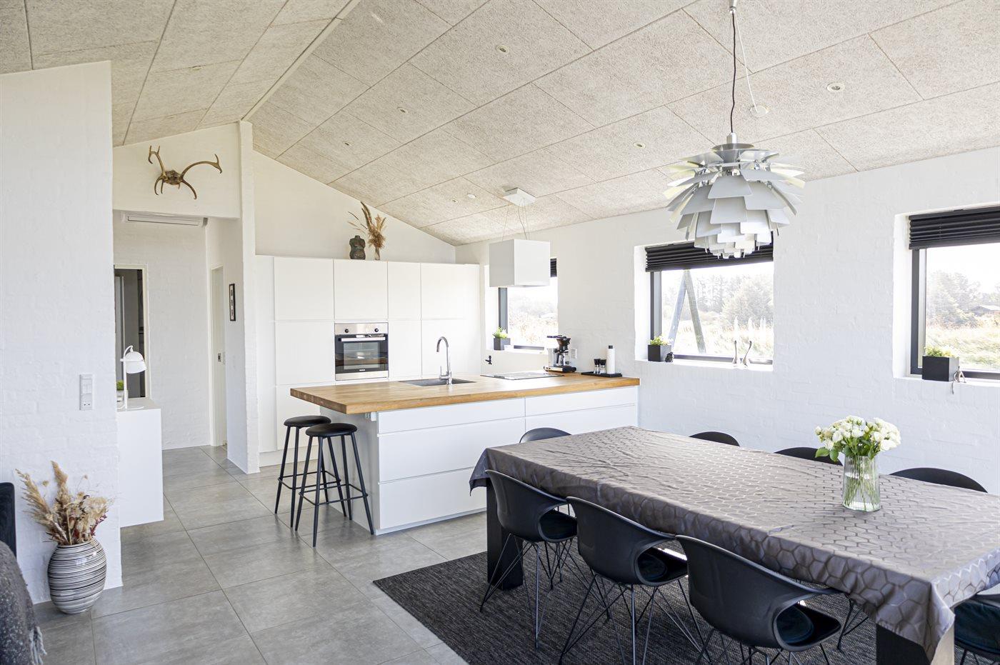 Med en super beliggenhed i sommerhusområdet ved Lønstrup finder I dette vidunderlige sommerhus, som er fuldstændig istandsat og hvorfra der er kig til havet. Boligen er af høj kvalitet og kan anvendes året rundt. I kan se frem til fire soveværelser, to badeværelser og et fantastisk lysindfald i opholdsrummet. Prikken over i’et er den lækre swimmingpool-bygning med spabad og kig til Vesterhavet. Beliggenheden er suveræn - lige ved vandet og stranden, som I kan nå på en frisk gåtur. Det er også muligt at spadsere til Rubjerg Knude Fyr, hvortil I har et flot kig fra hus og grund. Det er desuden let at komme ind til badebyen Lønstrup for at få klaret dagens indkøb. Her findes der også et dejligt udvalg af restauranter og butikker.