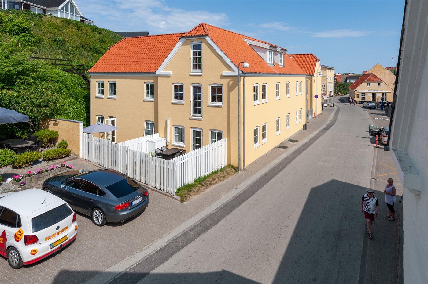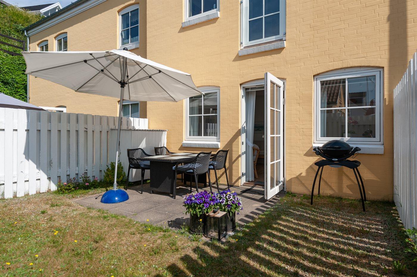 Skøn og moderne ferielejlighed i Klitgaarden, som er centralt beliggende midt i badebyen Lønstrup. Fra lejligheden er der udgang til en terrasse/gårdhave.