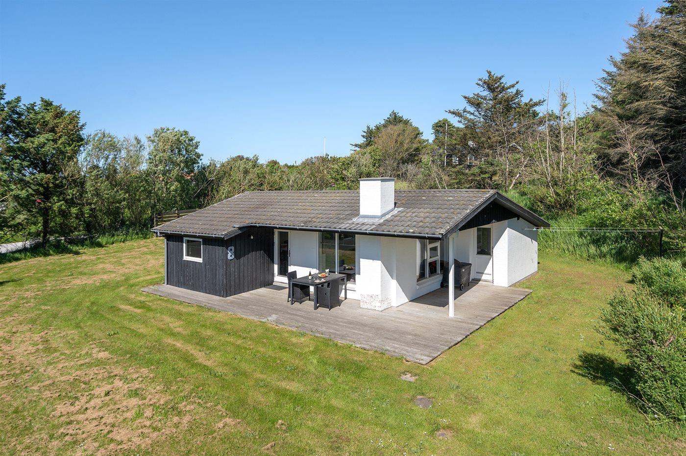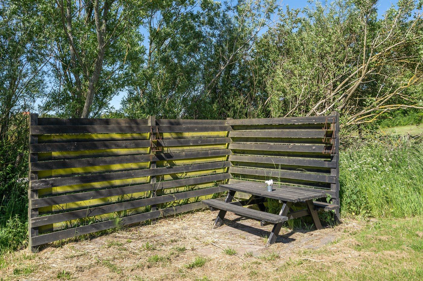 Ferieboligen er beliggende på en 1396 m² stor naturgrund. Der er 900 m til havet. Nærmeste forretning er beliggende i en afstand af 800 m. Til ferieboligen hører 10 m² terrasseareal. Desuden er der 20 m² overdækket terrasse. Grill til rådighed. Parkering ved ferieboligen.