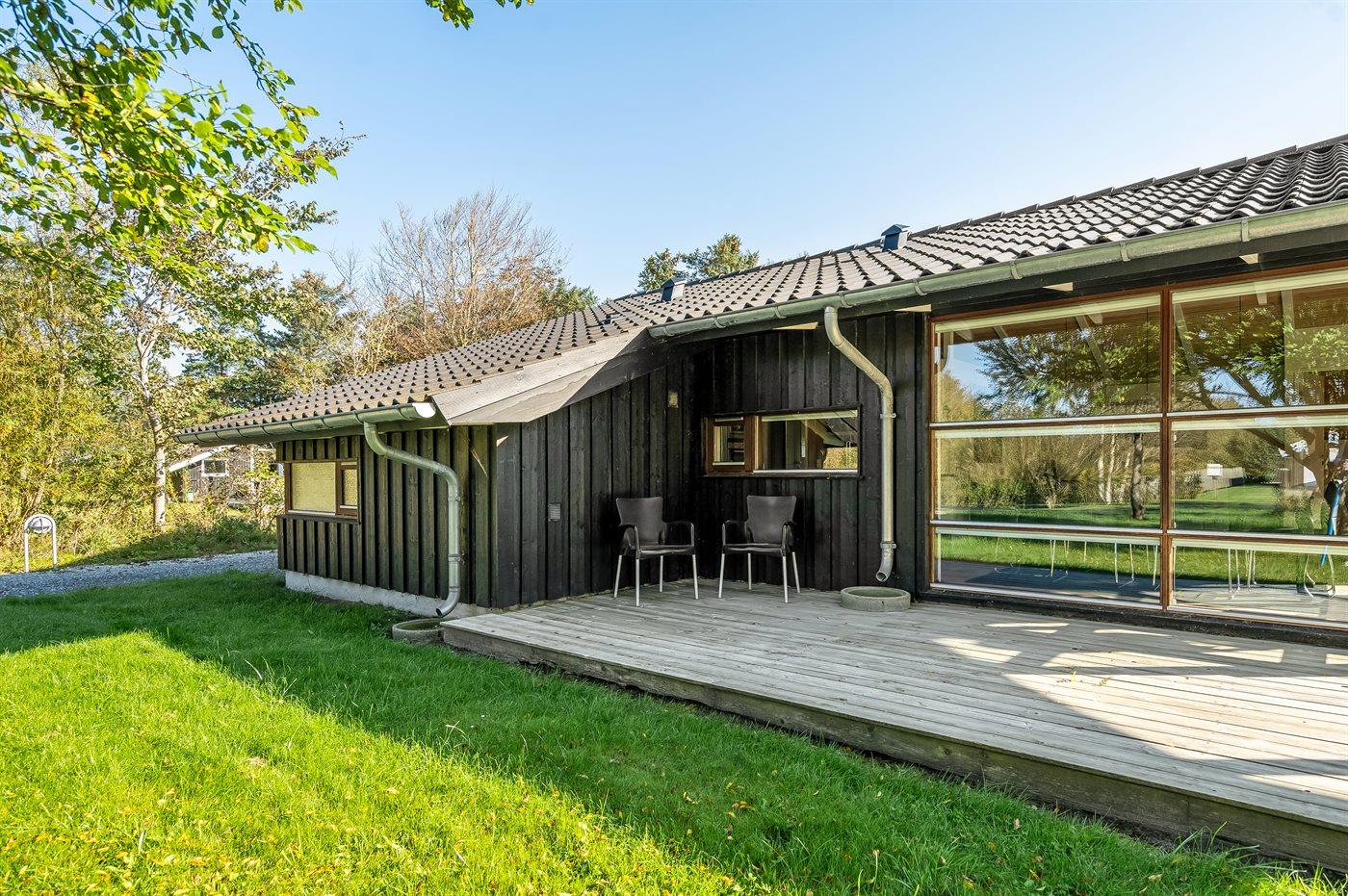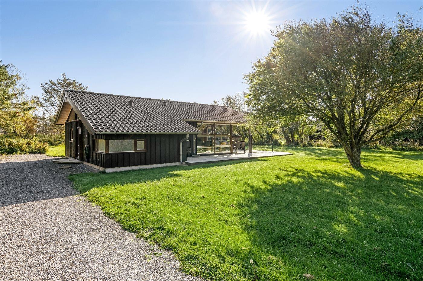 Ferieboligen er beliggende på en 1383 m² stor naturgrund. Der er 1330 m til havet. Nærmeste forretning er beliggende i en afstand af 500 m. Til ferieboligen hører åbent terrasseareal. Desuden er der overdækket terrasse. Der er redskabsrum (6 m2). Shelter (soveareal 320x210 cm, overdækket areal 320x330 cm). Grill til rådighed. Der er installeret stik til opladning af elbil. Type 2 stik. Med 11 kW ladeeffekt. Parkering ved ferieboligen.