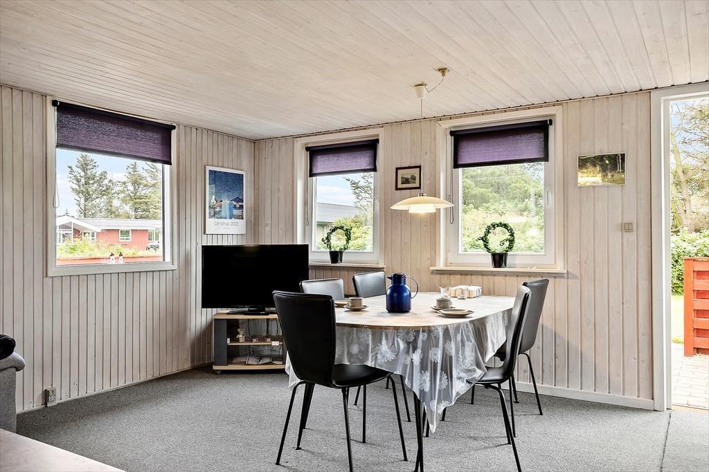 Det klassiske træsommerhus er oprindeligt opført i 1964 og er sidenhen blevet grundigt moderniseret. Blandt andet er husets køkkenafdeling indrettet på fin og funktionel vis, så det er et skønt sted at kokkerere, og takket være den åbne forbindelse til stuen kan I sågar tage del i feriehyggen, mens I forbereder aftensmaden. Stuen er hyggeligt indrettet, så det er et dejligt sted at samles til kortspil, TV-kigning og andre afslappende ferieaktiviteter, og vinduerne sørger for et godt lysindfald i løbet af dagen. Foruden opholdsafdelingen byder planløsningen på tre gode soveværelser og et lækkert badeværelse. Det ene soveværelse er udstyret med to enkeltsenge og de to andre med hver især en enkeltseng, så i alt er der sengepladser til fire personer i sommerhuset.
