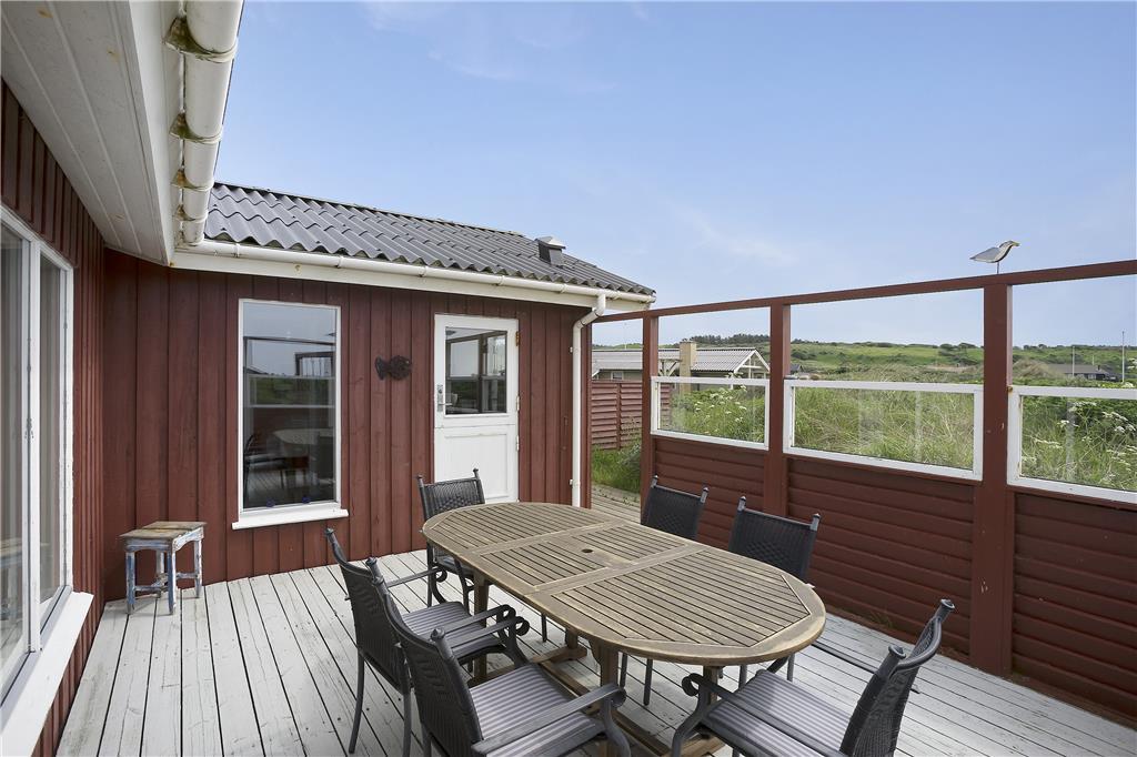 Sommerhuset ligger på en stor kuperet naturgrund i et flot område. Der er flere terrasser rundt om sommerhuset, så der er både mulighed for at nyde morgen, eftermiddags- og aftensole. Fra flere af terrasserne kan den flotte havudsigt nydes.