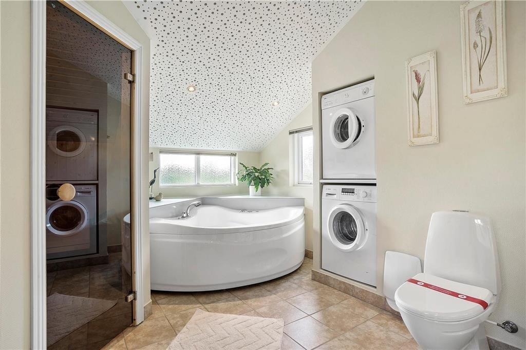 På kølige dage er det nemt at få tiden til at gå inden døre med spabad, saunature og hygge nær brændeovnen. Men så snart solen skinner og temperaturen er sommerlig, er det oplagt at flytte ferielivet ud under åben himmel. Rundt om huset er der anlagt flere terrasser, så I kan slå jer ned lige der, hvor solforholdene er optimale. Er der små børn med på ferie, kan de gynge og lege i sandkassen, mens legebørn i alle aldre kan slå sig løs på græsplænen med et spil vikingespil eller andre fælles haveaktiviteter.
