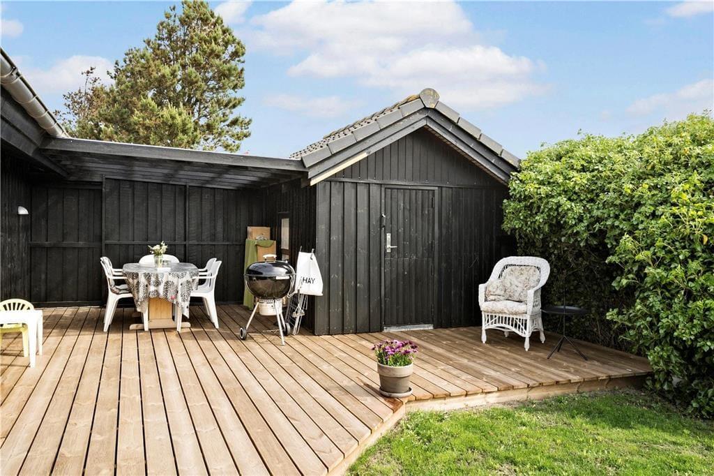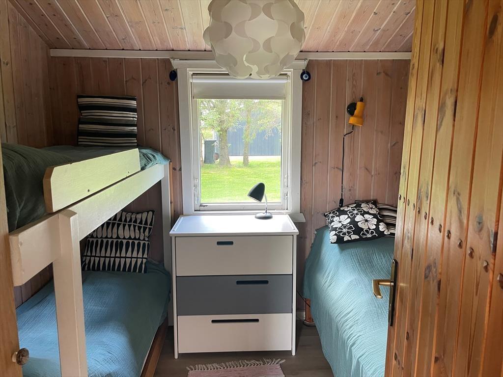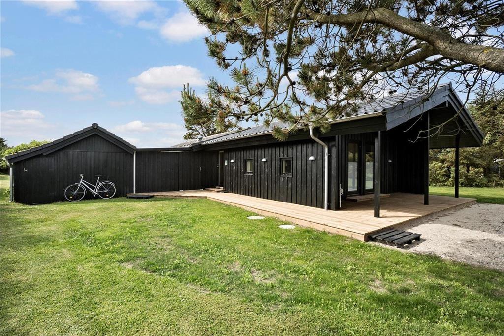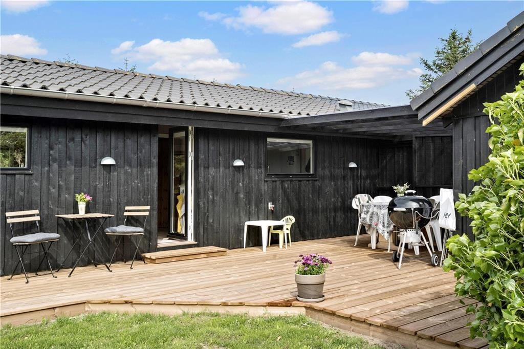 Det klassiske træsommerhus er oprindeligt opført i 1977, men er blevet grundigt moderniseret i 2019. Blandt andet er husets nye køkkenafdeling særdeles flot og funktionelt indrettet, så det er et skønt sted at kokkerere, og takket være den åbne forbindelse ind til stuen kan I sågar tage del i feriehyggen, mens I forbereder aftensmaden. Stuen er indrettet på hyggelig vis med brændeovn og pæne møbler, og vinduerne sørger for et godt lysindfald fra tre verdenshjørner. Som en del af opdateringen blev huset også udvidet med en tilbygning, så planløsningen i dag byder på tre gode soveværelser og et lækkert badeværelse. Det ene soveværelse er udstyret med to enkeltsenge, mens de to største soveværelser er indrettet med dobbeltseng og havedør til en overdækket terrasse.