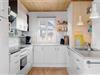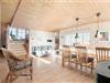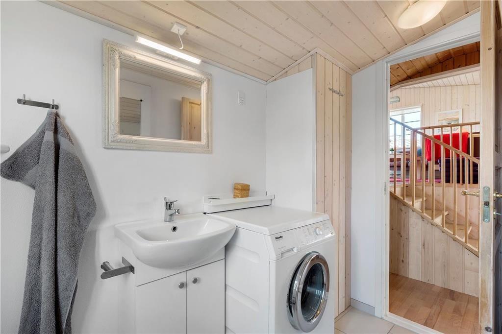 Sommerhuset er bygget på en kuperet grund, så stuen med havudsigt er hævet et niveau over de øvrige rum. I køkken-alrummet, der ligger i åben forbindelse med stuen, er udsigten også fin, for her kan I skue langt ud over det naturskønne sommerhusområde, når I sidder samlet ved spisebordet nær brændeovnen. Begge opholdsrum er hyggeligt indrettet med komfortabelt møblement, der indbyder til afslapning og ferieliv i roligt tempo. På de tre soveværelser, der i alt er udstyret med fem sengepladser, kan I også hurtigt føle jer hjemme, og selv badeværelset præsenterer sig på pæn og velholdt vis med vaskemaskine, gulvvarme og bruseniche.