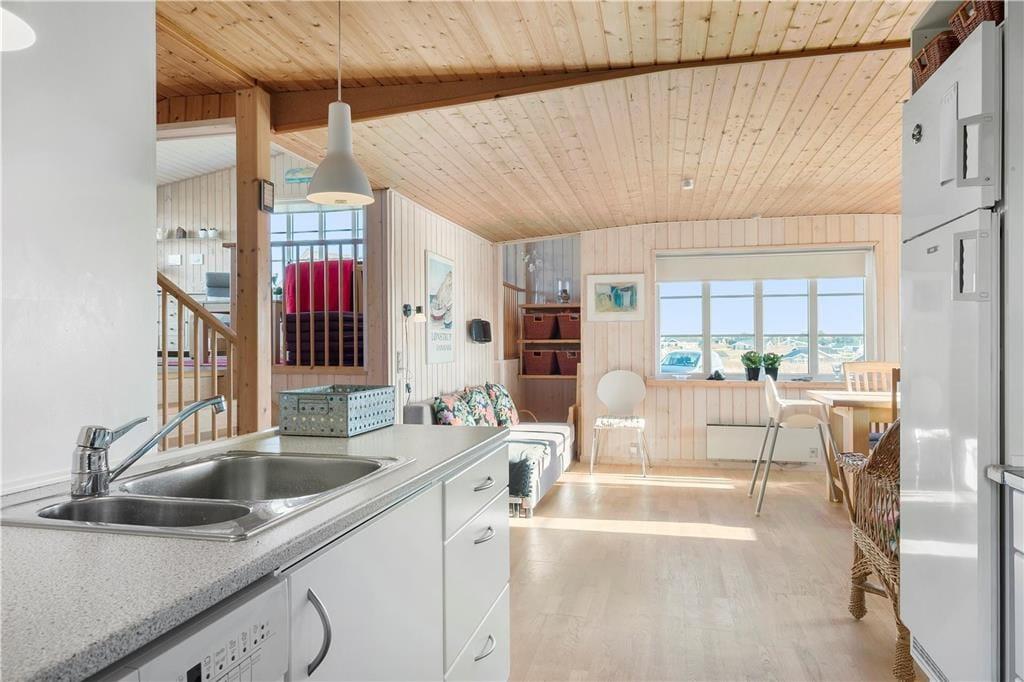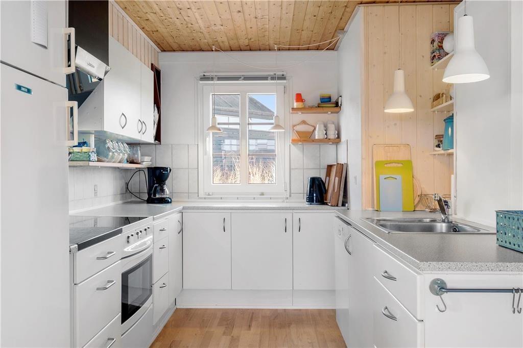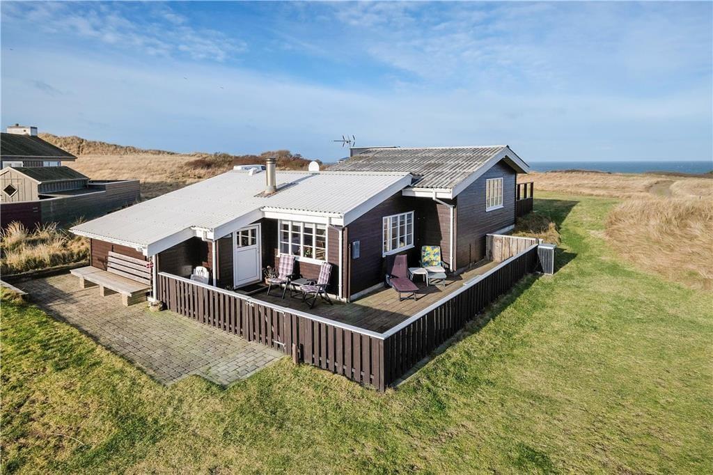 Dette dejlige sommerhus ligger højt i kystlandskabet tæt på de stejle klinter, der troner over Lønstrup Strand. Fra stuen såvel som terrassen har I udsigt til Vesterhavet, og det er et særdeles smukt syn, uanset om efterårsblæsten rusker op i bølgerne, eller sommersolen står højt på himmelen over det stille vand.
