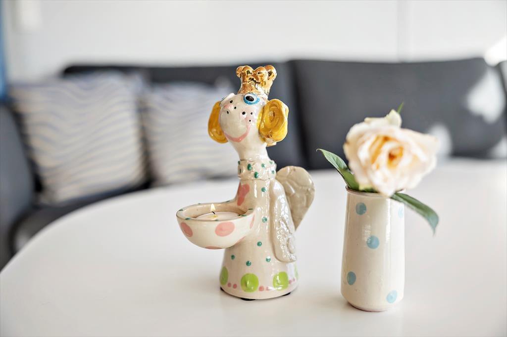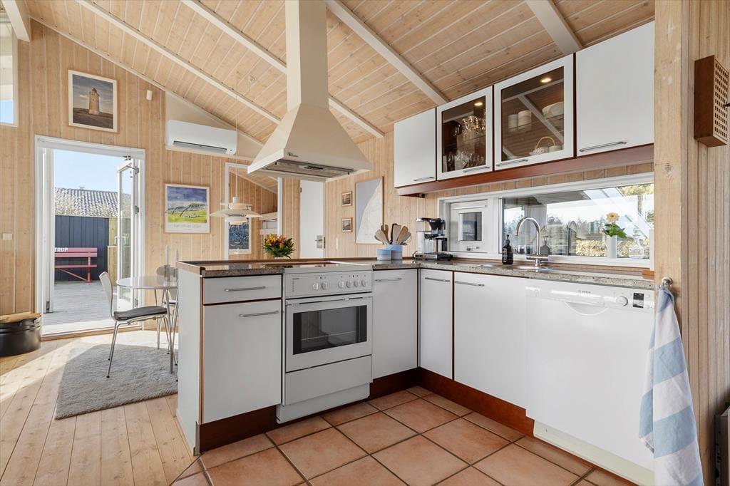 Med sin varme og personlige indretning byder dette sommerhus på Højlandet 21 dig hjerteligt velkommen til en ferie, hvor hyggen er i højsædet. Allerede ved første øjekast lægger man mærke til de små detaljer, der gør huset helt unikt – her er væggene smykket med lokal kunst, og hylderne bærer på finurlig og smuk keramik, som leder tankerne hen på Lønstrups mange gallerier. I det åbne opholdsrum smelter stue og køkken sammen til ét indbydende fællesrum, hvor ferien kan leves i fællesskabets tegn. Her er plads til samtaler, nærvær og afslapning – uanset om du læser en god bog i hjørnesofaen, lægger et puslespil med børnene eller nyder et glas vin, mens aftensmaden simrer på komfuret. Det hele foregår i lyse og venlige rammer, og med direkte adgang til terrassen kan du lade dørene stå åbne og lade sommerluften strømme frit gennem huset. Her føler man sig hurtigt hjemme – også hvis familiens firbenede ven er med, for her er hunde nemlig hjerteligt velkomne.