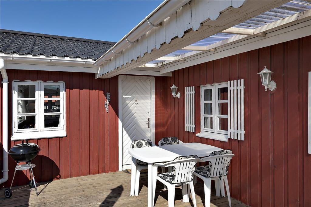 Solskin, havudsigt og frisk saltvandsduft i næseborene: Det er herligt at være ude i det fri på sommerhusets to terrasser! Den ene vender ud mod vandet, mens den anden er sydvendt og delvist overdækket, så begge er skønne opholdspladser, når vejret indbyder til udendørs driverliv.