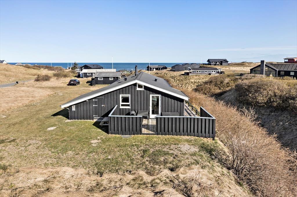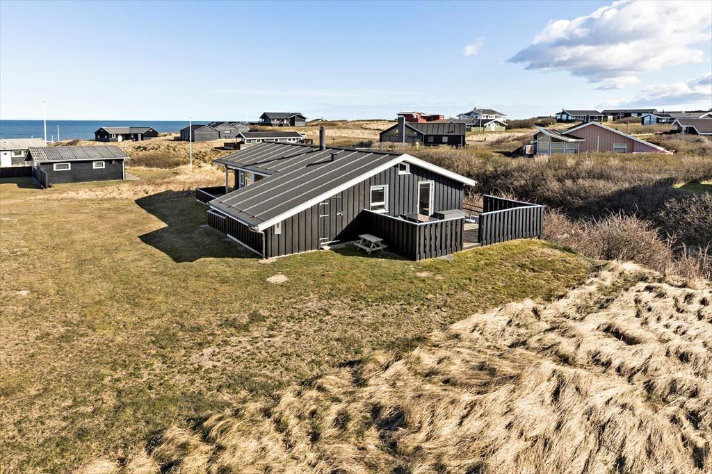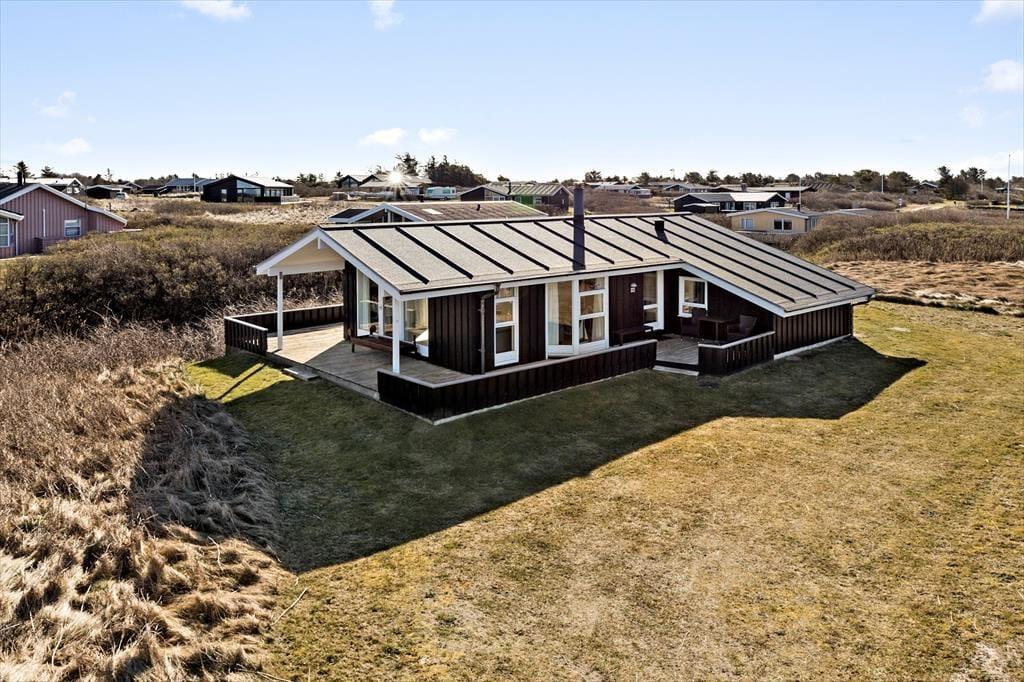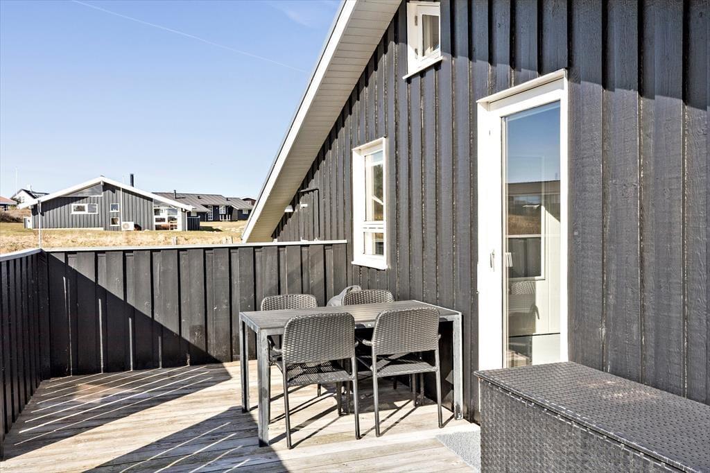 Der er dejlige terrasser omkring huset, hvor I kan nyde solen og den fantastiske udsigt. Her finder I altid et sted med sol eller skygge, alt efter behov, og da huset ligger lige ved en slugt, er der ekstra fredeligt og privat. Børnene kan lege eller spille bold på den naturlige grund, der smelter sammen med det omkringliggende klitlandskab. Her får I masser af ro og fred, og Vesterhavet er så tæt på, at I kan nyde den friske, salte havluft fra terrassen.