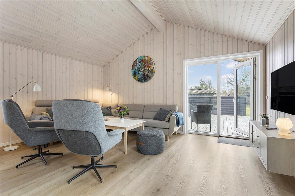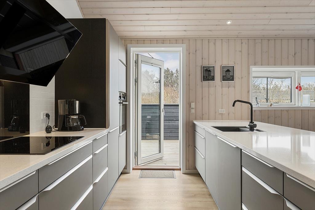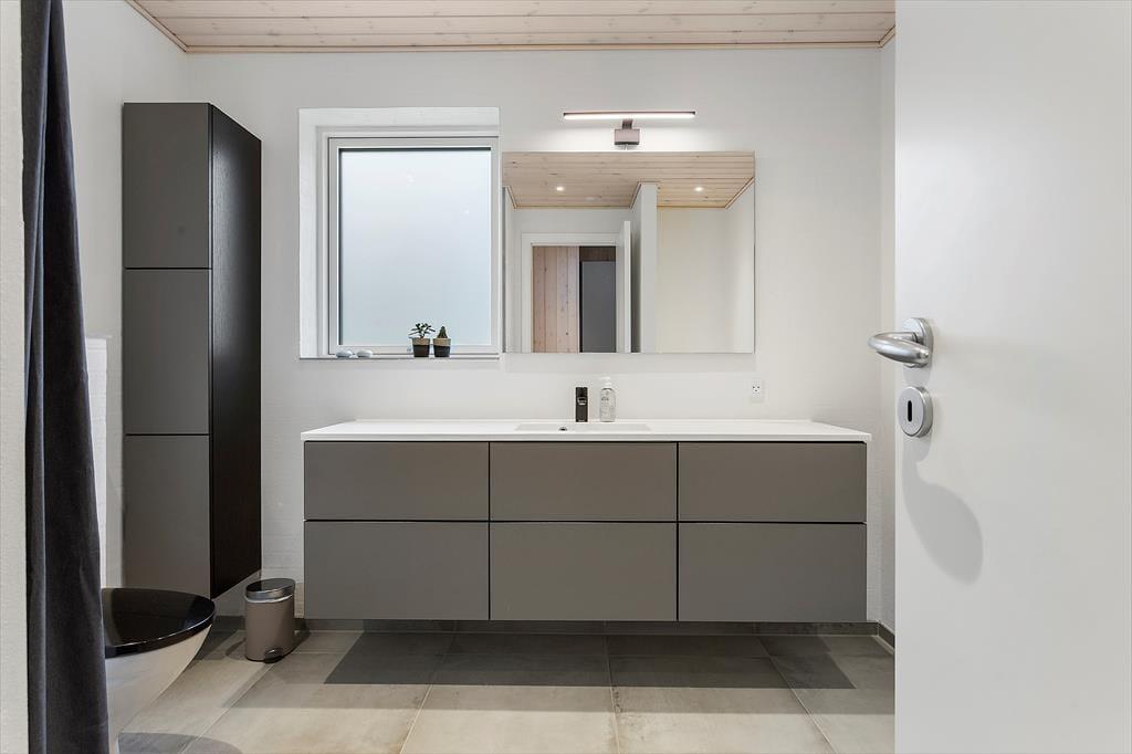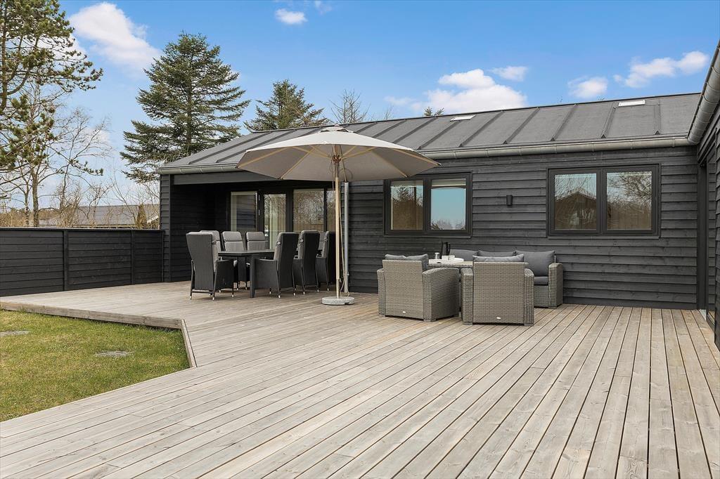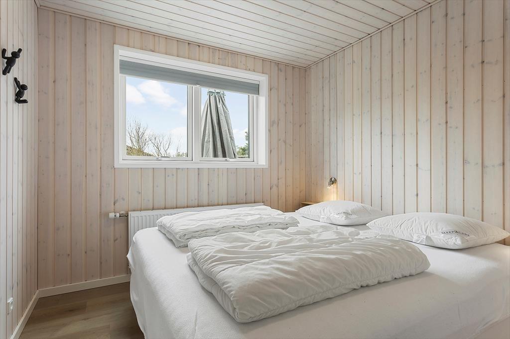 Her på Brune Banke 5 kan I se frem til at holde ferie i et nybyggeri, hvor alt bare spiller. Møblementet er ikke bare flot at kigge på, men også funktionelt og komfortabelt, og der er gjort god brug af alle 130 m2. Planløsningen byder på fire gode værelser, som alle er med dobbeltseng, og de to badeværelser er begge udstyret med bruser og gulvvarme. Husets hjerte er et stort opholdsrum med stue og køkken i åben forbindelse. Her er der loft til kip, flotte gulve med gulvvarme samt flere havedøre til terrasserne, hvilket alt sammen bidrager til den lette og luftige atmosfære. Et stort fladskærms-tv sørger for underholdning til sofaafslapningen – og hvis nogen skulle trænge til lidt alenetid og kontrol over remoten, er der en lille stue med tv i den anden ende af huset. Den ekstra stue er et godt eksempel på, hvor gennemført indretningen er. En anden fin detalje er, at der står et ekstra køleskab i skuret, så I altid har god plads til kølige drikke.