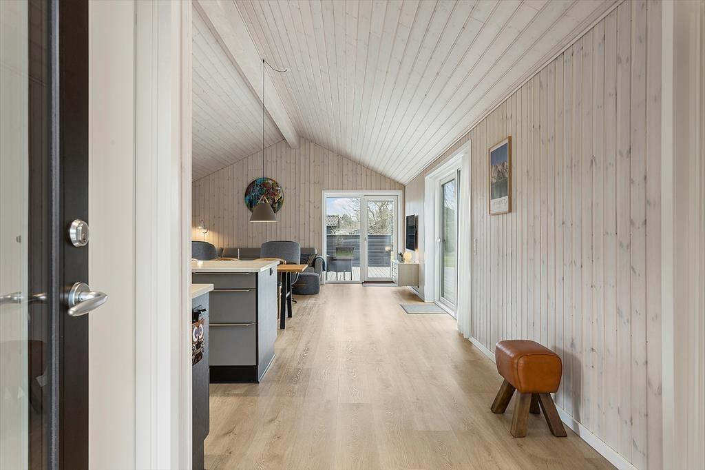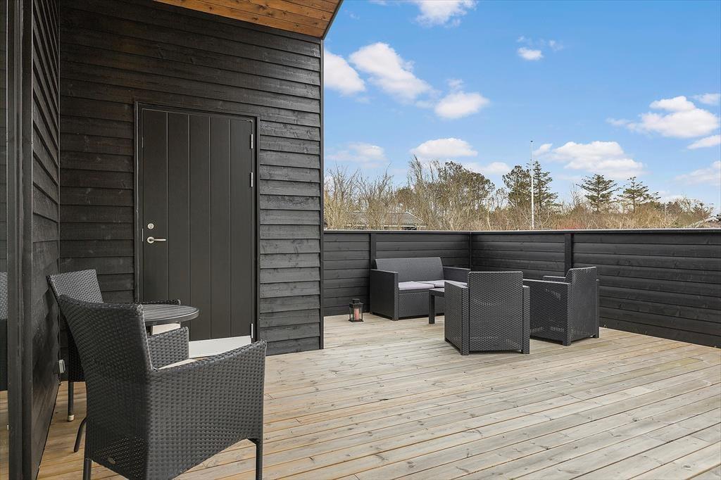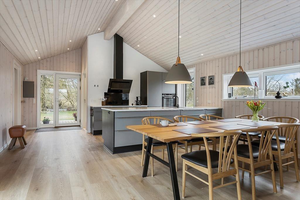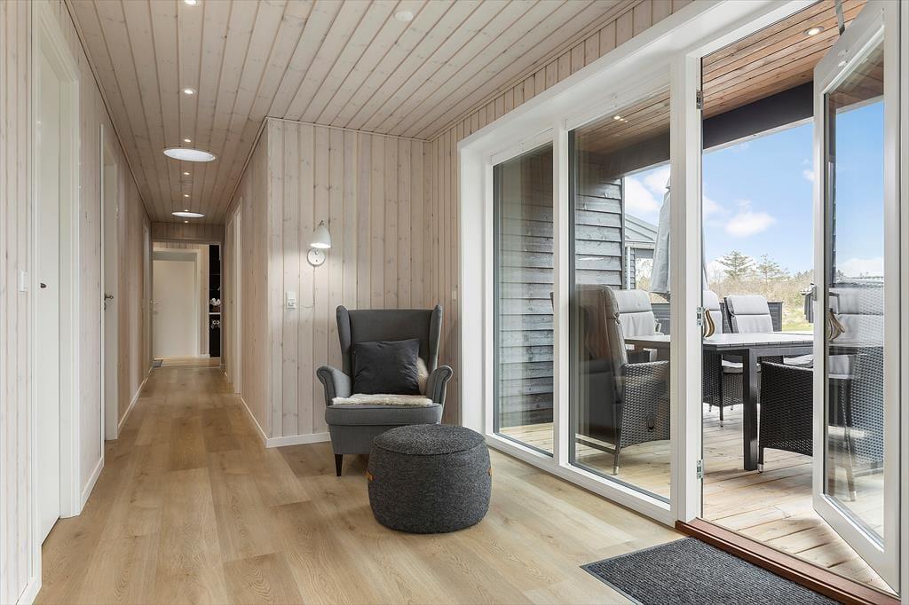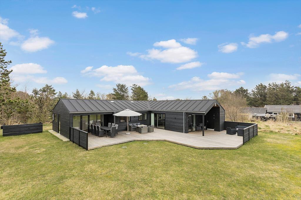 Dette moderne kvalitetshus fra 2022 er lækkert indrettet og har en perfekt planløsning til otte personer, og det gør det oplagt som feriebolig for to familier. Ude venter flere store terrasser, hvor I kan nyde sol og sommerliv – og hele herligheden ligger på en rolig, lukket vej i den populære kystby Lønstrup.