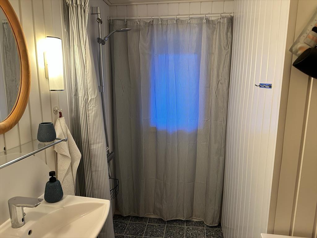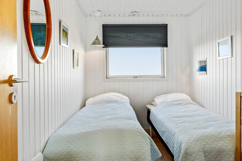 På den lukkede vej Bredningen ligger huset i anden række til kysten, men der er ikke noget, der skygger for udsigten stik vest for stuevinduet. I har med andre ord det smukkeste bagtæppe, når I slapper af inden døre, så det kan være helt svært at koncentrere sig om at se film, med mindre I trækker gardinet for. Et stort fladskærms-tv er placeret lige ved sofaafdelingen, og derudover byder stuen på en klassisk brændeovn og en hyggelig spiseplads med slagbænk. Køkkenet ligger i åben forbindelse med stuen, og her har I alt, hvad I skal bruge, inklusiv opvaskemaskine. Badeværelset er enkelt og funktionelt indrettet med bruseniche og vaskemaskine, og på de tre gode soveværelser er der plads til, at seks overnattende gæster kan sove komfortabelt.