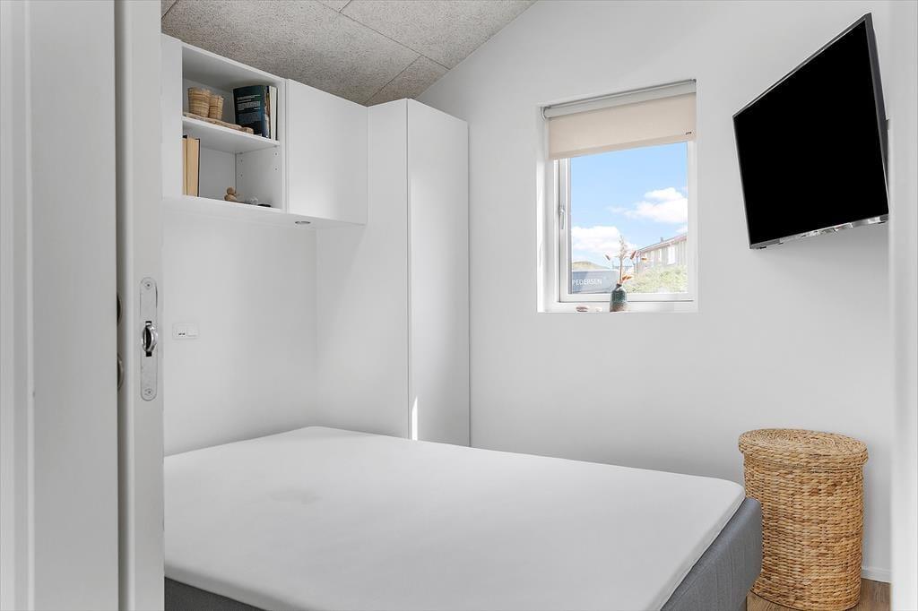 Sommerhuset kan rumme tre personer og en hund, og både to- og firbenede familiemedlemmer får tilsvarende glimrende forhold ude i det fri. Her venter der nemlig to skønne terrasser, der begge er helt aflukkede, og uanset om I sidder her eller på det åbne terrasseareal ud for stuen, føles det eksklusivt at opholde sig i første parket til Vesterhavet.