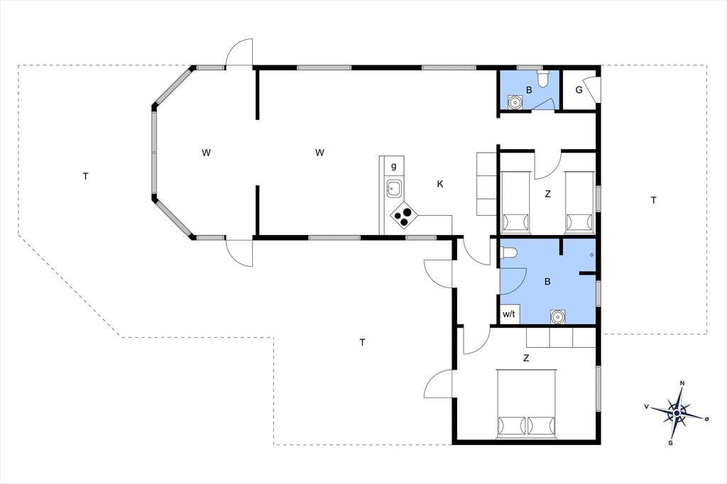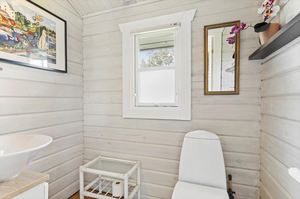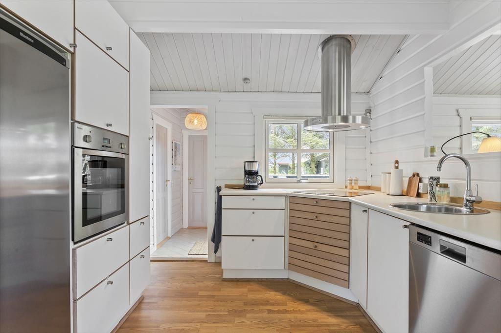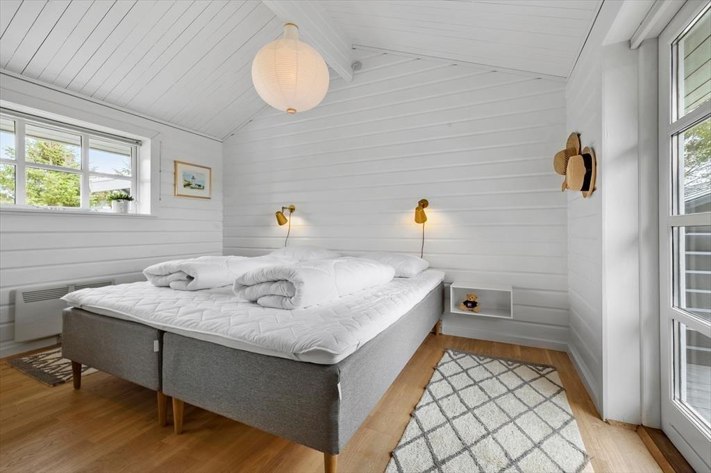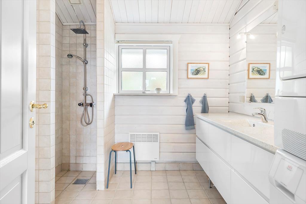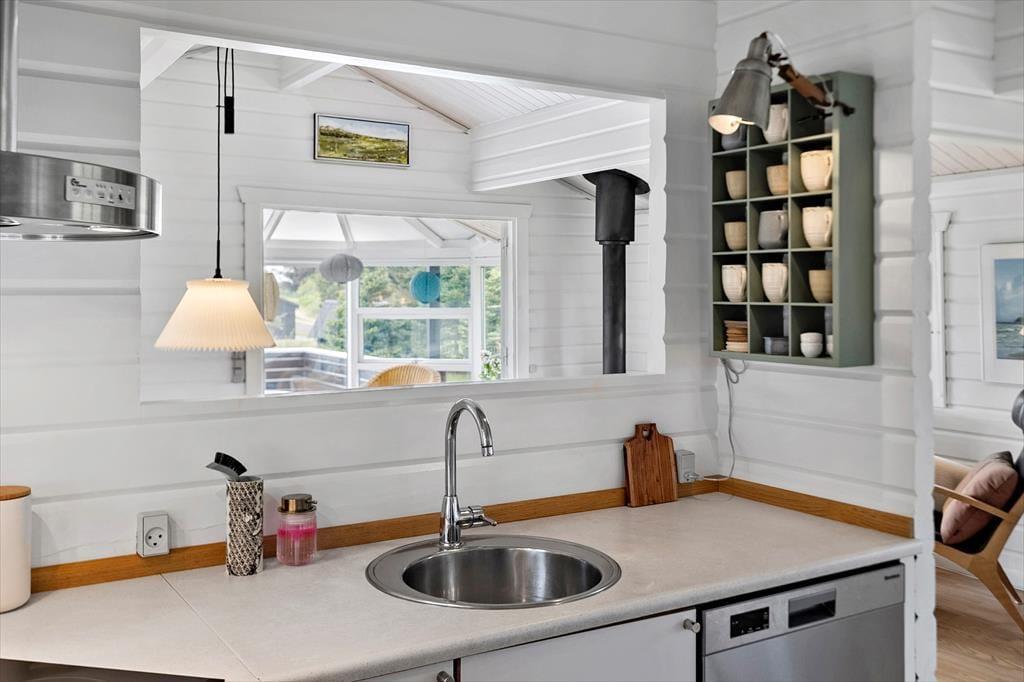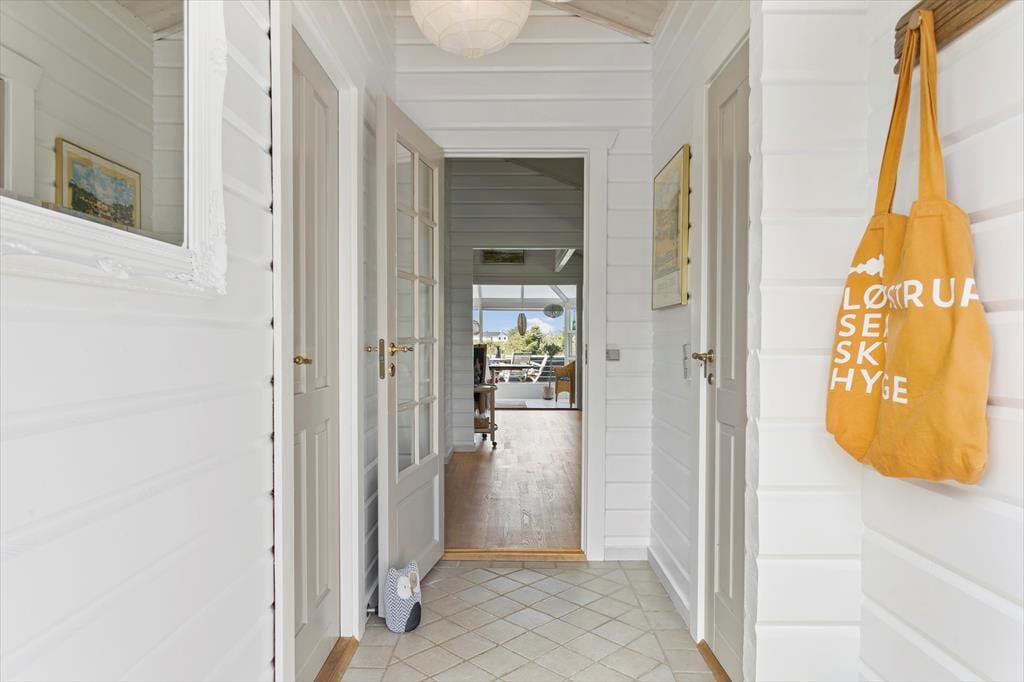 I forlængelse af stuen med et trin ned, er der en skøn lys udestue med panoramaudsigt og udgang til stor terrasse. I køkkenet er der hyggelig spisekrog med trin ned til mellemgang, hvor der er udgang til terrassen. Fra mellemgang er der indgang til stort badeværelse med bruseniche, vaskemaskine og tørretumbler og ved siden af ligger soverum med dobbeltseng, hvorfra der er også udgang til terrassen. I forbindelse med værelset med 2 enkeltsenge er der et lille gæstetoilet.