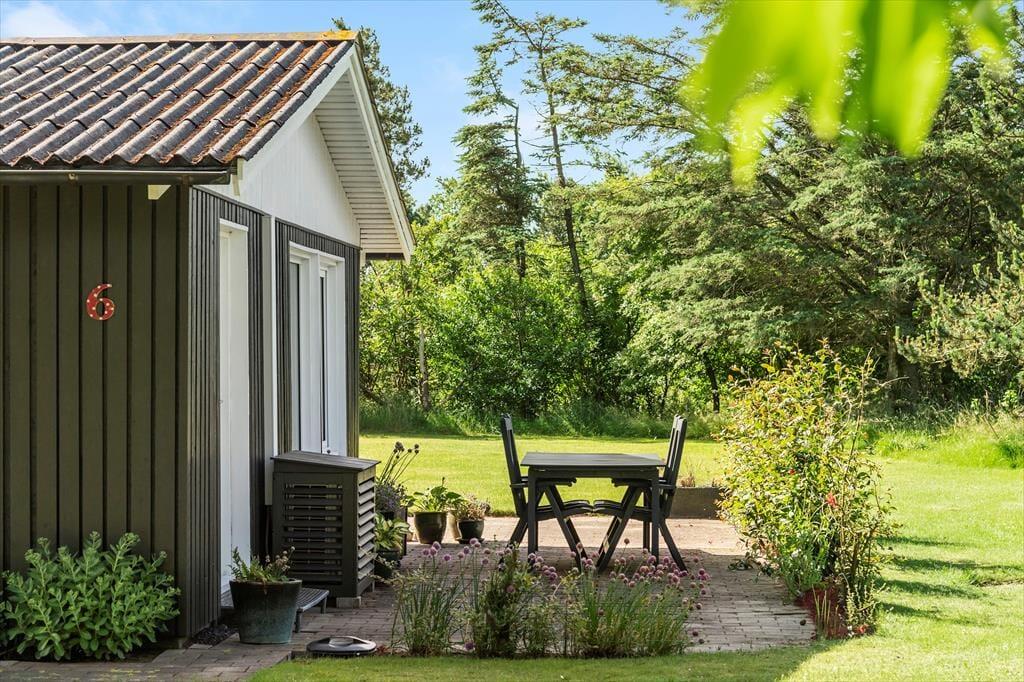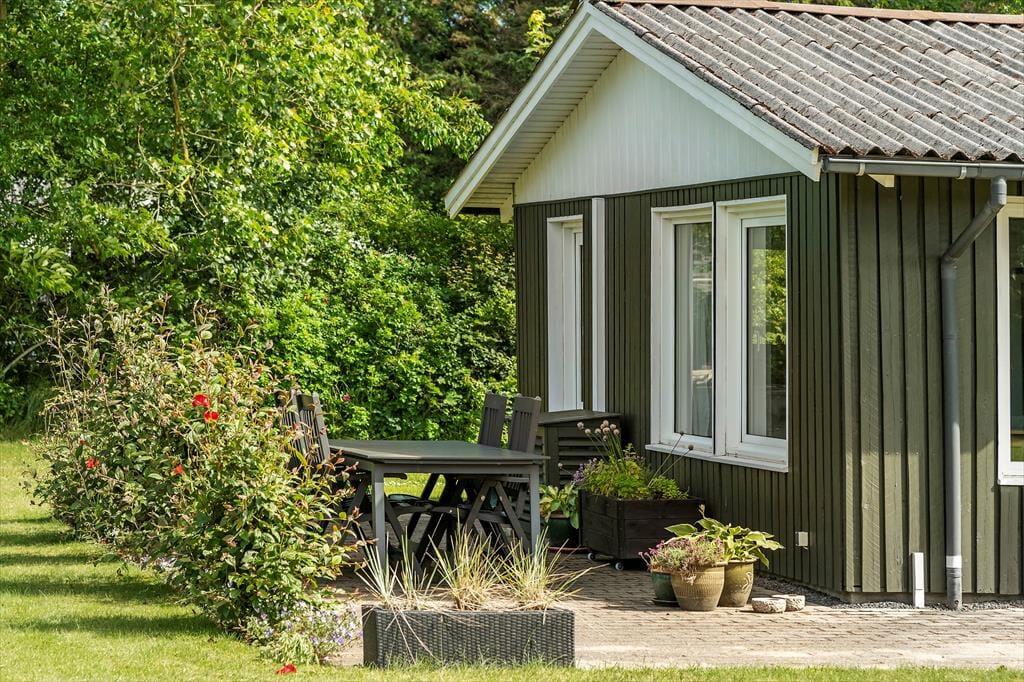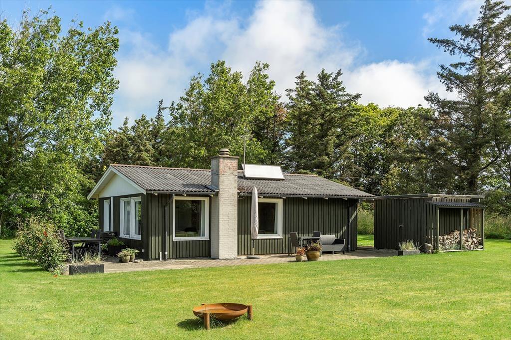 Sommerhusgrundens store, grønne græsplæne indbyder til fangeleg og fodbold med børnene – eller en rolig stund på et tæppe med udsigt til de forbipasserende skyer på himlen. Foretrækker du at sidde lidt mere civiliseret, kan du slå dig ned på sommerhusets dejlige terrasse, der breder sig mod syd og vest. Når aftenen nærmer sig, kan du overveje, om det er tid til at tænde op i enten grillen eller bålfadet, for det er herligt at sidde helt roligt i havens fredfyldte omgivelser, mens skyggerne bliver lange, og fuglene synger fra trætoppene.