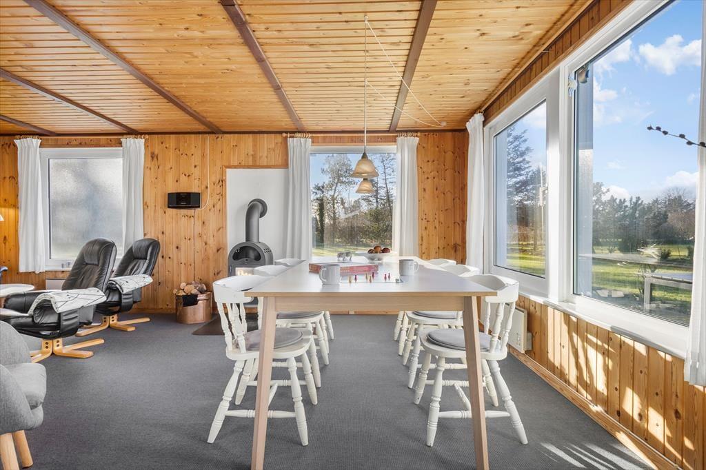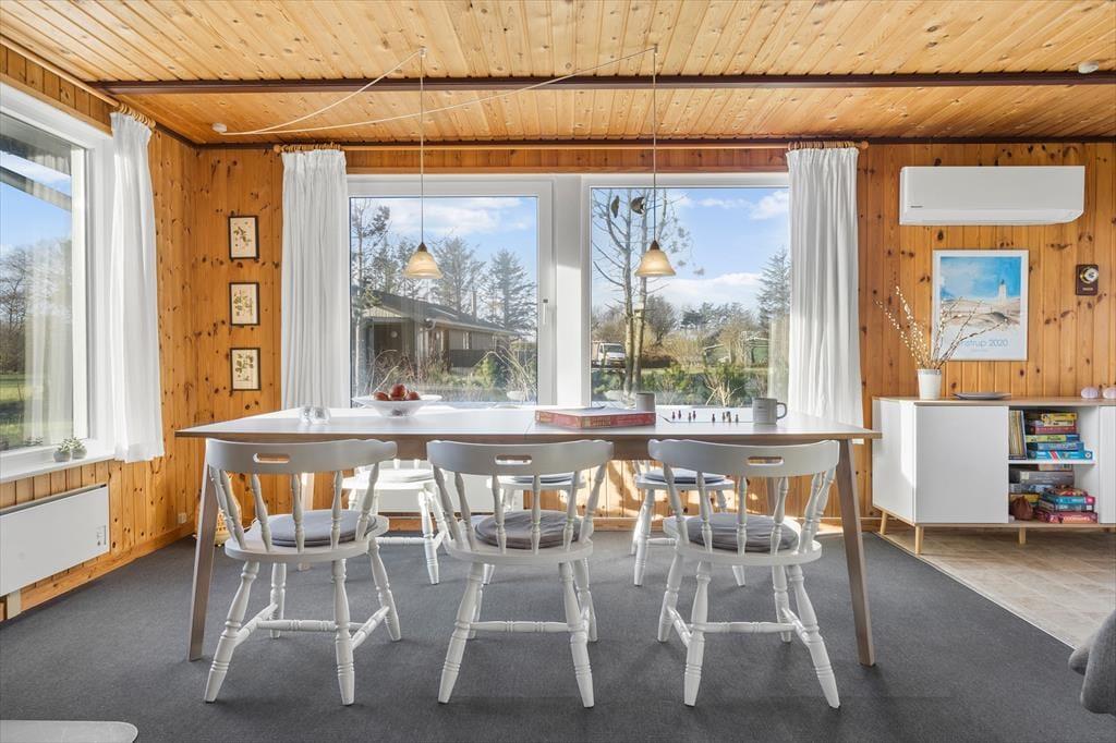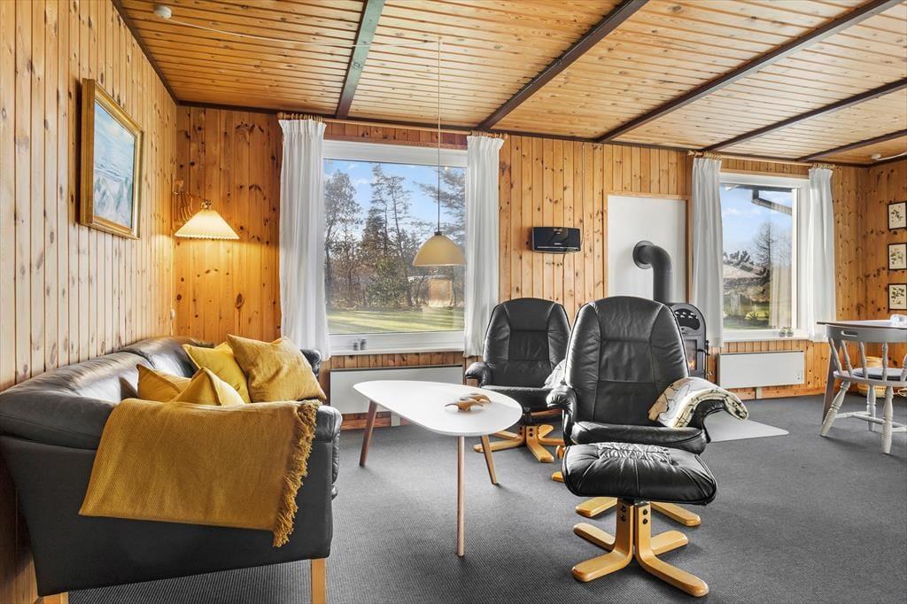 Den gode sommerhusstemning bliver slået an lige fra start, for med træbeklædning på væggene og komfortabelt møblement har alle rum en varm og venlig atmosfære. Vinduerne sørger for et godt lysindfald, og stuens temperatur kan du hurtigt skrue op for takket være brændeovnen og varmepumpen. Hvis det slet ikke er koldt, men lunt udenfor, er der en dør ud til terrassen lige ved køkkenet, så du kan invitere frisk luft og sommerdufte ind i opholdsrummet. Køkkenet er for øvrigt af nyere dato, så du har en dejlig arbejdsstation, når du vil lave frokost eller blot brygge kaffe til eftermiddagens brætspil.