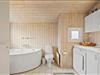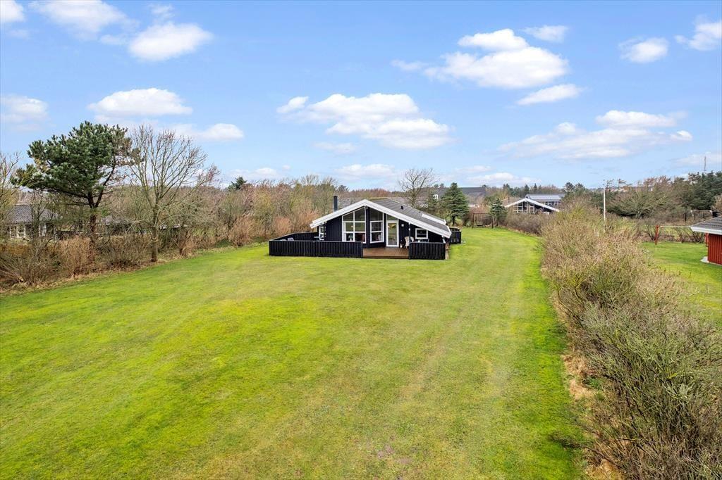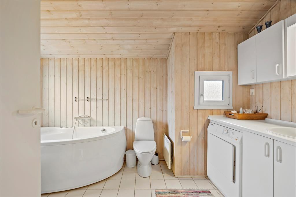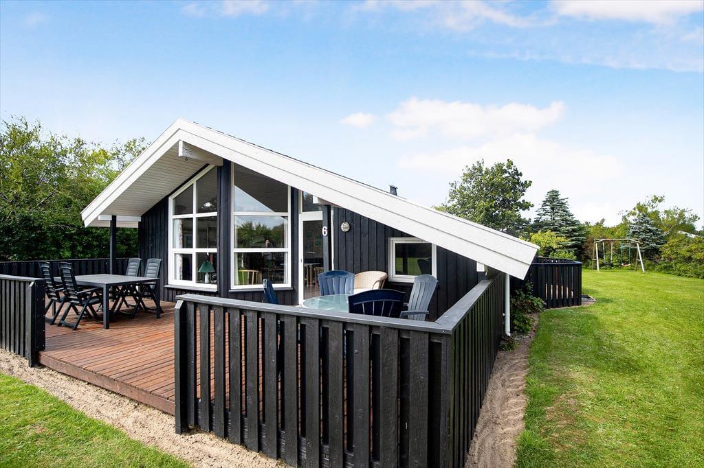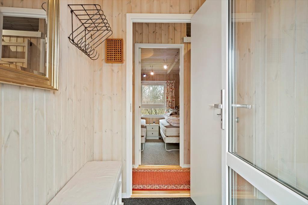 Sommerhuset har en fornuftig planløsning, der gør det muligt at samles op til seks personer inden døre. Hvis du er så heldig at skulle bo på det største af de tre soveværelser, er der god grund til at gå tidligt i seng, for dobbeltsengen er placeret under et ovenlysvindue, så du kan ligge og kigge på stjerner, inden du falder i søvn. I løbet af dagen er det skønt at slappe af i stuen – eventuelt med ild i brændeovnen og duften fra en nybagt kage i det åbne køkken – og du har også mulighed for at forkæle dig selv med et varmt spabad på det rummelige badeværelse.