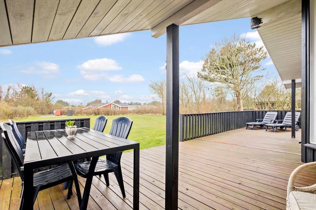 Rundt om huset venter der flere dejlige terrasser, så du kan lige tage bestik af solens placering på himlen, inden du sætter dig til rette i en havestol. Grunden omkranses af randbeplantning, der giver læ og skærmer af ind mod naboerne, og takket være græsplænens generøse størrelse har du god plads til at tumle med hunden eller udfordre børnene i diverse havespil. En del af den sydvendte terrasse er overdækket, så hvis du gerne vil siddende længe ude, kan du slå dig ned her uden at behøve at tænke på, om duggen falder.