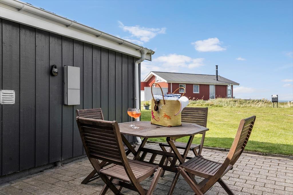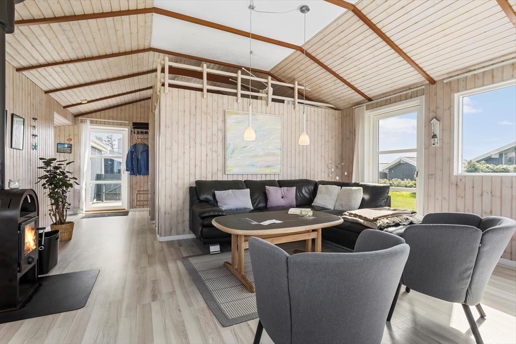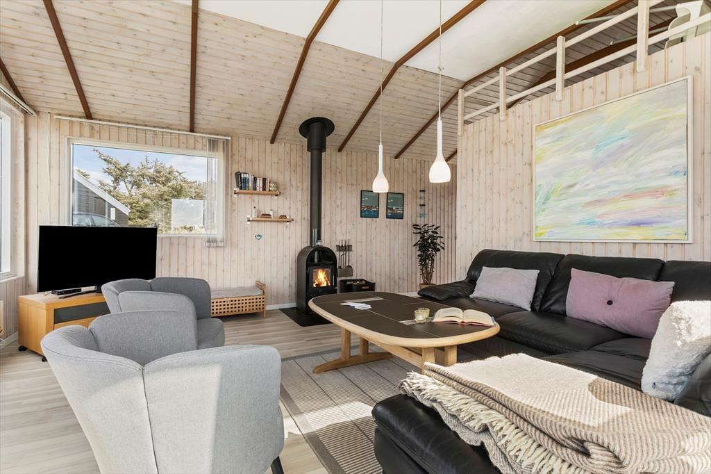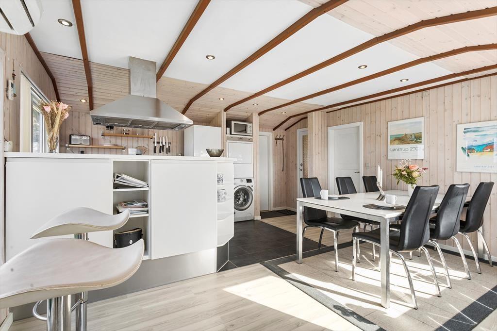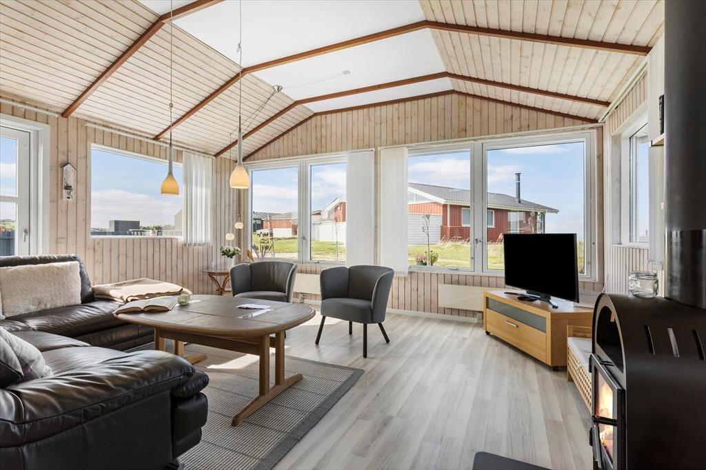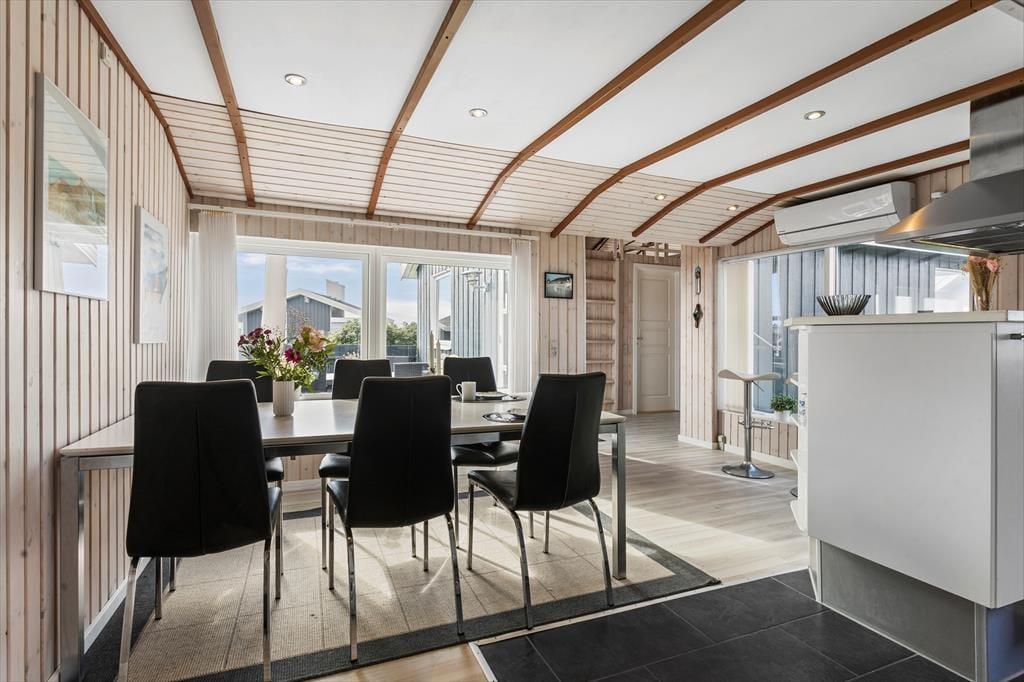 Det første, der møder dig, når du træder ind i sommerhuset, er den lyse og velholdte atmosfære, som skaber den helt rette feriestemning fra første øjeblik. Store vinduespartier lukker masser af dagslys ind og giver dig samtidig en betagende udsigt til både havet og det åbne landskab omkring huset – perfekt som baggrundstæppe til rolige feriedage med familie og venner. Husets planløsning er velvalgt med en naturlig opdeling mellem spise- og opholdsafdeling, så det er nemt at samle hele flokken omkring måltiderne, uden at gå på kompromis med muligheden for ro og afslapning. Her er plads til både nærvær og alenetid – og uanset om du tager plads med en kop kaffe og en god bog, eller nyder aftensmaden med udsigt til solnedgangen, føles det som ægte ferie.