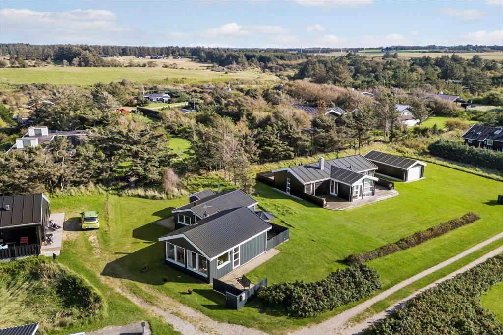Sommerhuset ligger i et af Lønstrups mest eftertragtede områder – tæt på både by og natur, men alligevel tilbagetrukket fra feriebyens summen. Stranden er som nævnt tæt på, og den charmerende bymidte med gallerier, små butikker og gode spisesteder er heller ikke langt væk. Her finder du alt fra hjemmelavet is til gourmetretter, og hvis du har lyst til at dykke ned i lokal kultur og kunsthåndværk, er Lønstrup det helt rigtige sted. Du kan også tage turen op til Lønstrup Klint, hvor udsigten over Vesterhavet er lige dele dramatisk og dragende. Og trænger du til endnu mere forkælelse, ligger Skallerup Seaside Resort blot en kort køretur væk med spa, wellness og aktiviteter for hele familien. Med andre ord: Her får du et sommerhus med både ro og oplevelser lige uden for døren – hvad enten du drømmer om bølger, vandrestier eller vestjysk charme.