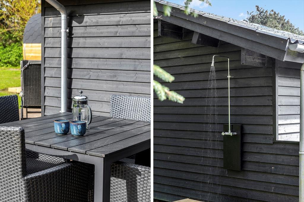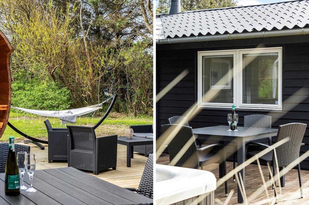 Udenfor venter en stor og solrig terrasse, hvor du kan nyde den friske havluft og lyden af Vesterhavet i baggrunden. Her kan du slappe af i de komfortable havemøbler, grille en lækker middag eller bare nyde en stille stund med en bog. Den udendørs spa giver dig mulighed for at synke ned i det varme vand og lade kroppen slappe helt af, mens du nyder den frie udsigt til naturen. Vil du have endnu mere velvære, kan du trække dig tilbage i den udendørs sauna og lade varmen omfavne dig, inden du tager et forfriskende bad under åben himmel.