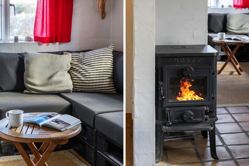 Indendørs byder sommerhuset sig til med en rustik og hyggelig indretning, hvor træværk og varme farver skaber en afslappet atmosfære. Opholdsrummet har en brændeovn, der spreder både varme og ægte feriestemning, når ilden knitrer i baggrunden på kølige dage. Samtidig sørger en moderne varmepumpe for et behageligt indeklima, uanset årstid. Husets to plan giver dig mulighed for at nyde havkigget fra første sal, og det er svært ikke at lade blikket og tankerne vandre, når du står her og ser Vesterhavets blå horisont. Overalt fornemmes en hjemlig charme, som inviterer til at læne sig tilbage og nyde ferien i fulde drag.