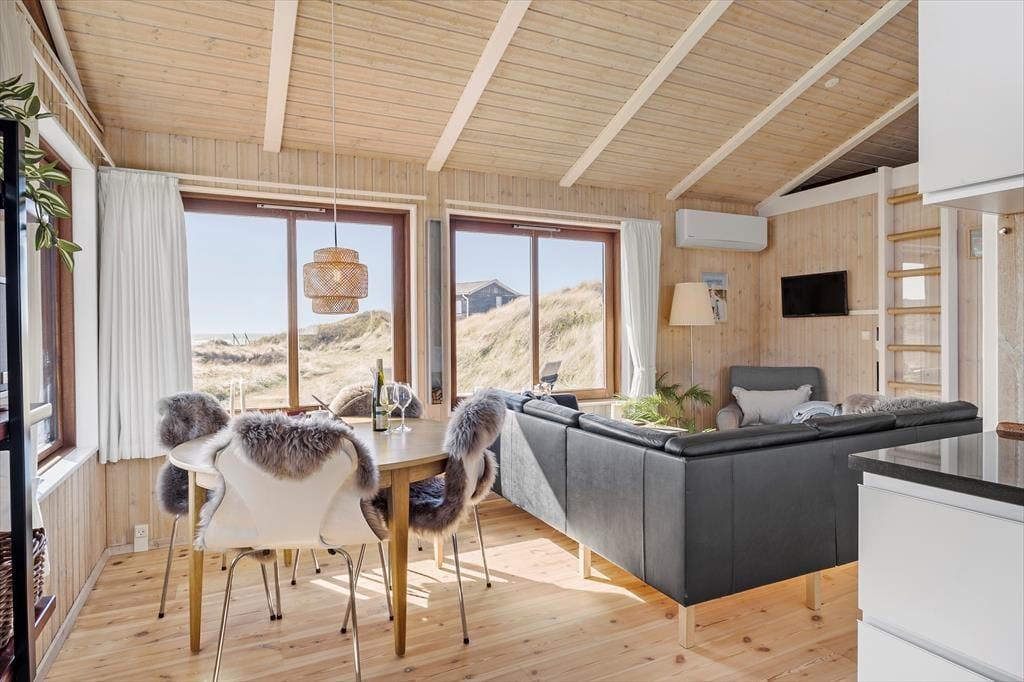 På den kønne naturgrund mærker man tætheden til Vesterhavet. Den salte duft og lyden af de brusende bølger når helt op til sommerhuset, og fra bænken har man 1.parket til de smukke solnedgange, så hyggeligt og betagende et syn! På den lukkede terrasse er der god plads til at nyde sommeren, lave lækkert mad i udekøkkenet og bare slippe hverdagens høje tempo og deadlines.