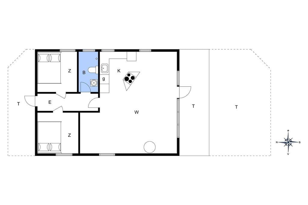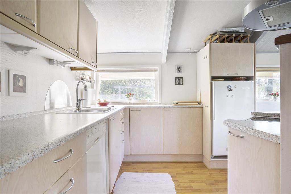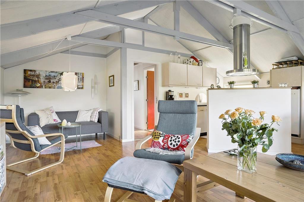 Dettes sommerhus hører på papiret til et af de mindre, men størrelsen udlignes helt bestemt af den hyggelige og varme stemning, som man møder ved det første skridt ind i entreen. Med to værelser og fire sengepladser er her fint plads til en lille familie, og helt ideelt for et par, som gerne vil lidt væk fra hverdagens høje tempo. Sommerhuset har et stort og åbent opholdsrum med højt til loftet og et dejligt lysindfald. Køkkenet er placeret i det ene hjørne, kun adskilt fra stuen med spisebord, brændeovn og tv af en halvmur. Desuden også et pænt badeværelse med bruser. Sommerhuset er fint udstyret med vaskemaskine og opvaskemaskine, så man ikke behøver bruge mere tid på praktiske gøremål end normalt, og endelig kan det nævnes, at det er muligt at benytte det trådløse internet uden beregning, husk blot pc eller tablet hjemmefra.