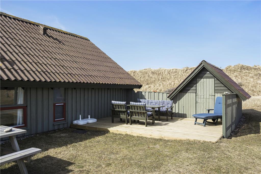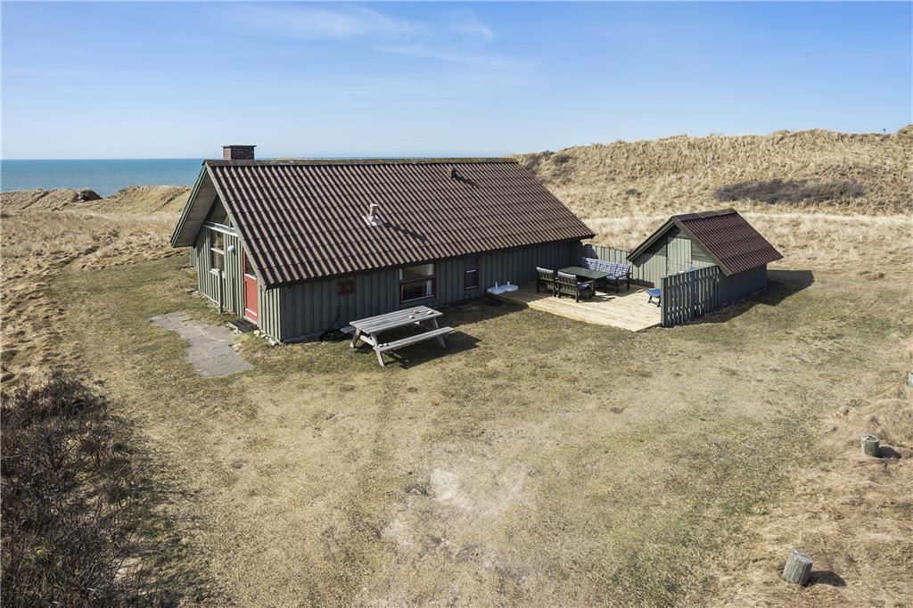 Sommerhuset ligger på en stor kuperet naturgrund. Foran huset er det en hel ugeneret udsigt mod havet. Fra stuen er der udgang til den overdækkede terrasse, hvor sommeren kan nydes fra en af de bedste beliggenheder i Lønstrup. Mod øst er der en terrasse, som er fin at nyde morgenkaffen på.