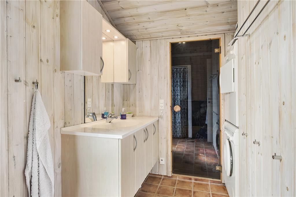 Sommerhuset har et åbent køkken-alrum, som er lyst og pænt indrettet. Med brændeovn og store vinduer, der giver en rigtig god udsigt over havet og området, så er opholdsrummet i dette hus bestemt et skønt sted at slappe af og nyde sin families selskab. Huset rummer tre værelser, af varierende størrelser, men alle med en dobbeltseng, og et større, lyst badeværelse med vaskemaskine og tørretumbler. Sommerhuset danner helt bestemt gode rammer for en dejlig ferie i Lønstrup!