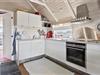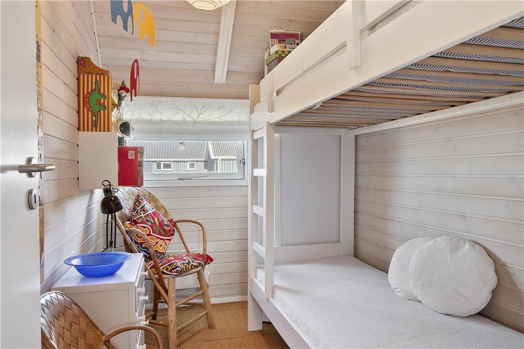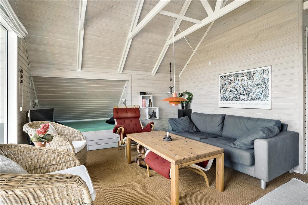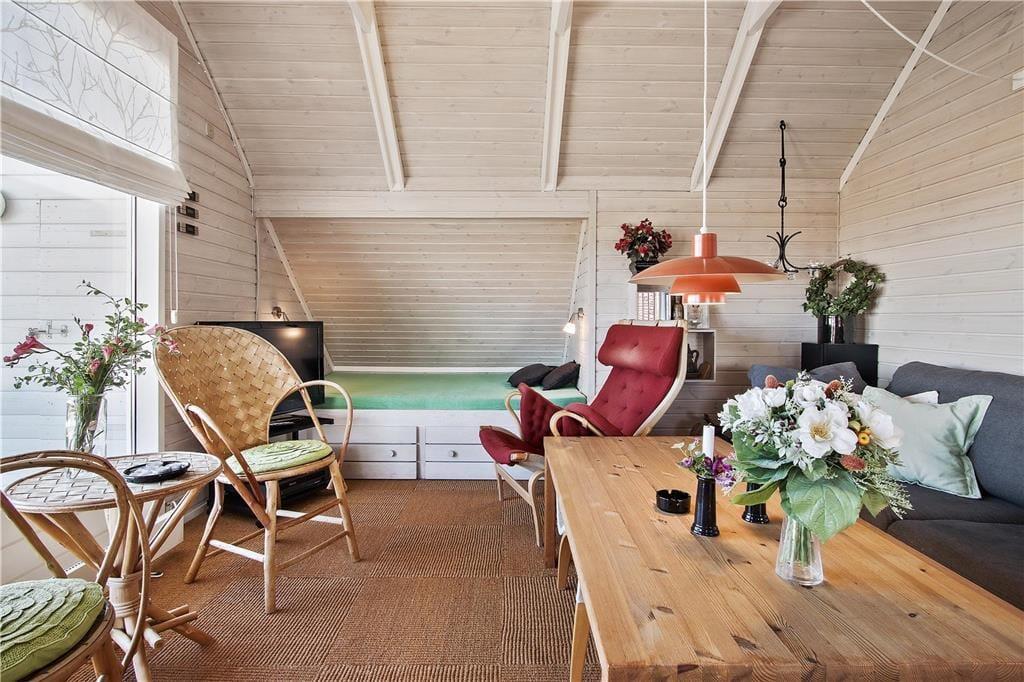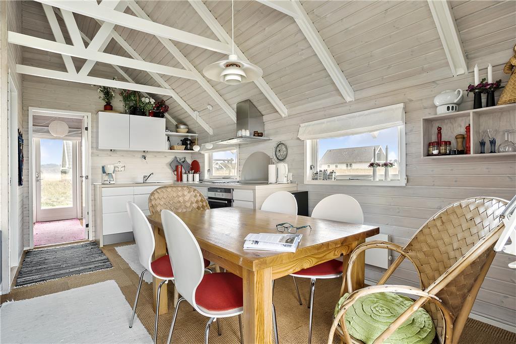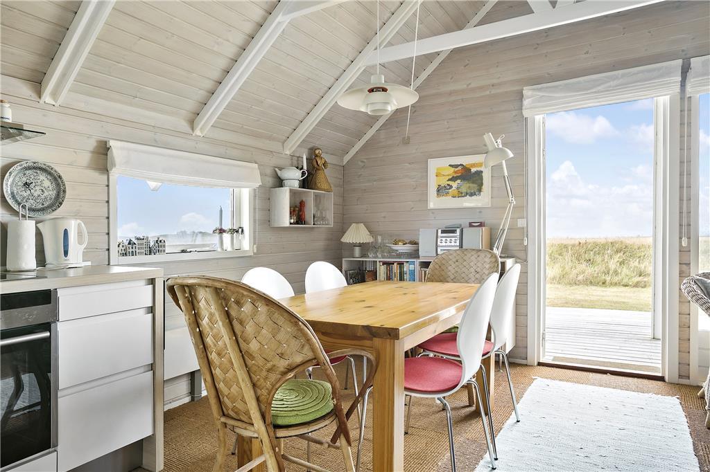 Indenfor venter et sommerhus med en afslappet og personlig indretning, der virkelig skaber den rette feriestemning. Her er plads til fem personer, og det er tydeligt, at der er tænkt på hver eneste detalje. De hyggelige og personlige indretningsvalg giver et varmt og hjemligt præg, og du vil straks føle dig velkommen. I opholdsstuen er der store vinduer, som giver et flot lysindfald og ikke mindst den dejlige havudsigt. Når du sidder her og kigger ud på havet, føles tiden næsten som om den står stille. Den åbne forbindelse til køkkenet gør det nemt at være sammen med dem, du holder af, mens du tilbereder måltider eller nyder en snack.