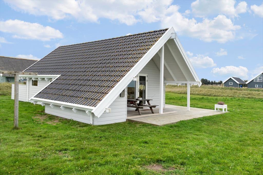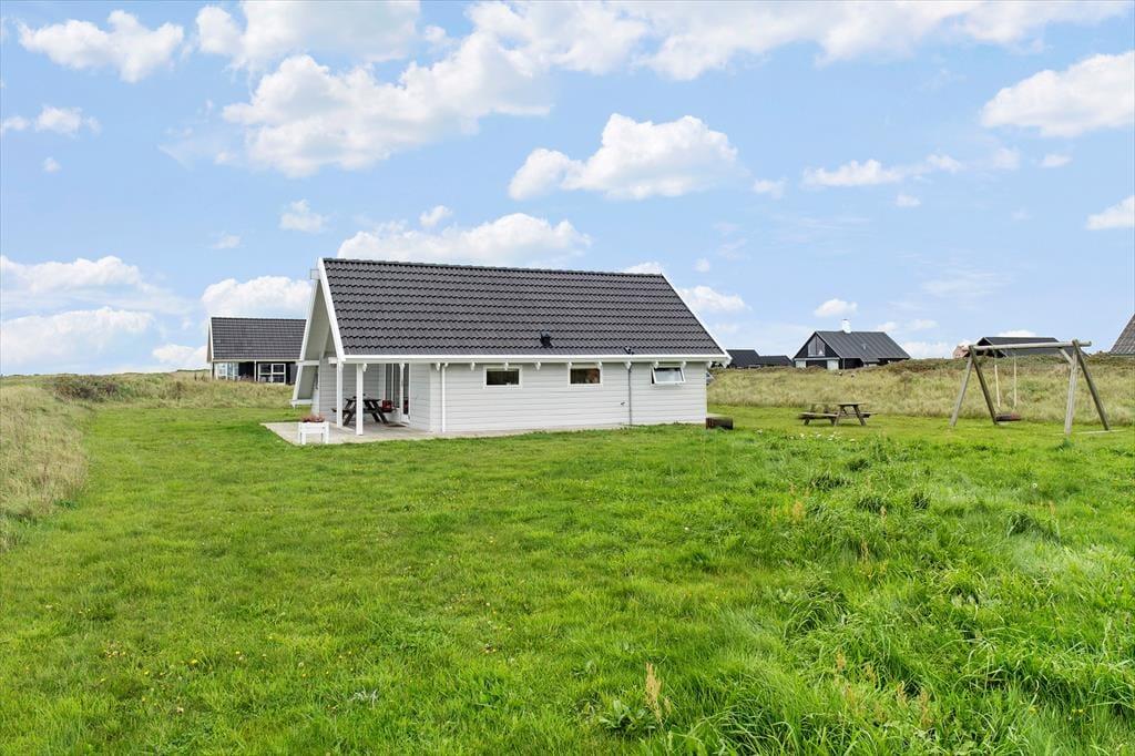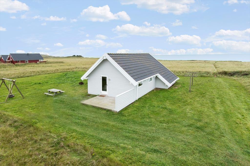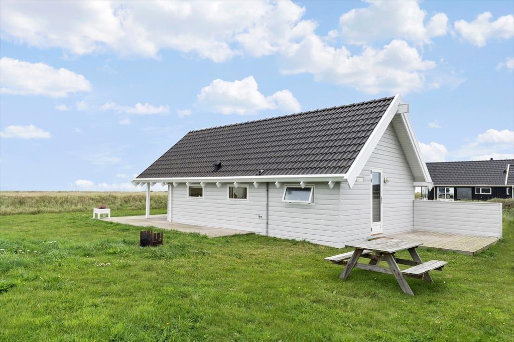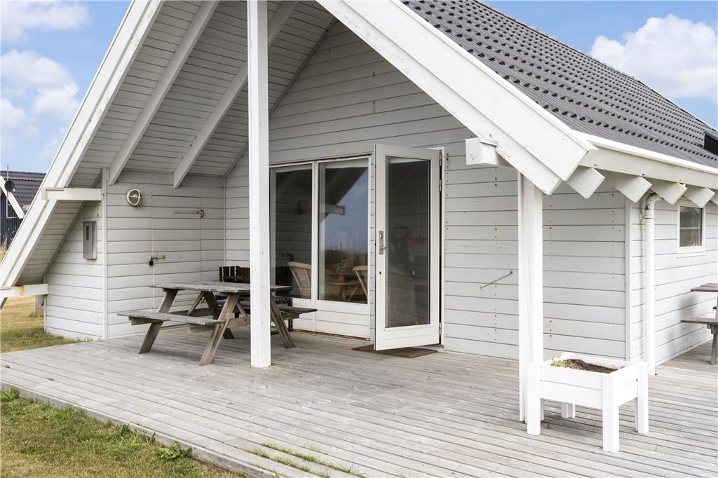 Sommerhusets terrasseområde er perfekt til at nyde livet udendørs. Uanset om du er til morgenkaffe i solens første stråler eller afslapning i den varme eftermiddagssol, så er der altid en god plads at slå sig ned. Fra terrassen har du en fantastisk udsigt til det åbne landskab, og især havet giver en unik følelse af ro. Det er en ideel base til at nyde de lange sommerdage med en god bog, et glas vin eller bare en stille stund. Efter en lang dag på stranden eller på udflugt i området er det et skønt sted at afslutte dagen, mens solen går ned.