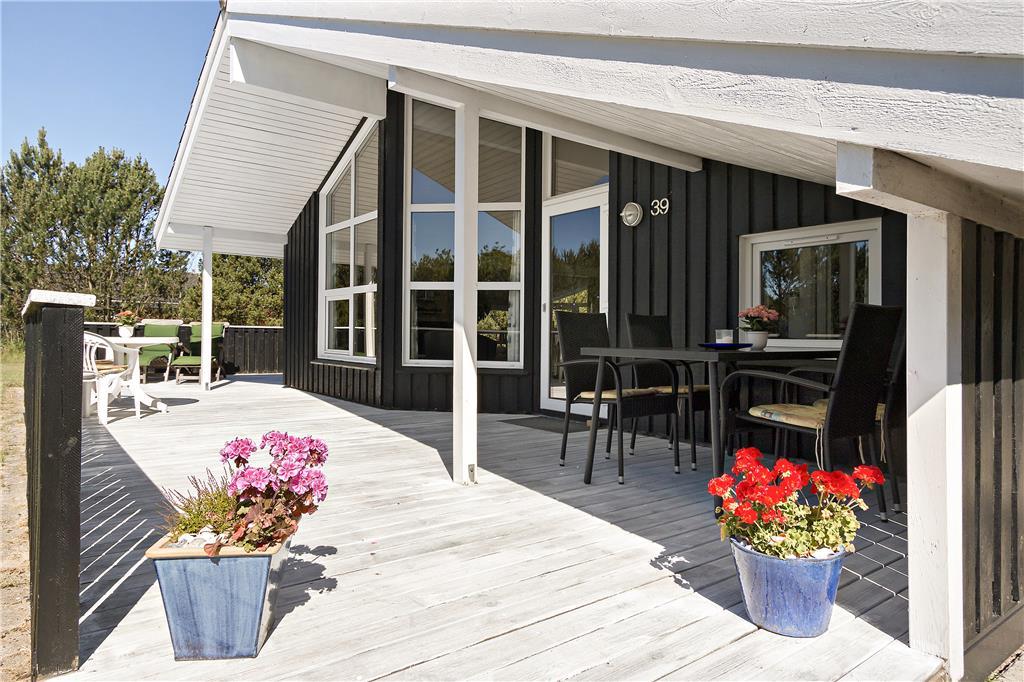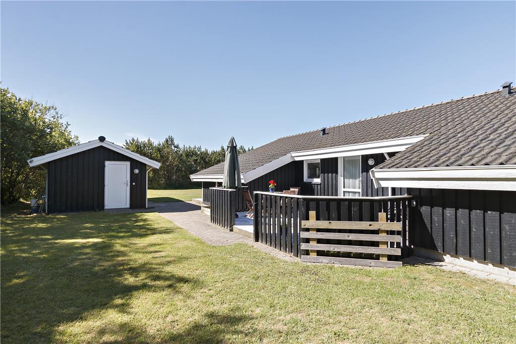 Huset er omgivet af en stor græsplæne, som giver unikke muligheder for alle former for boldspil. Desuden er der skønne terrasser, som skærmer mod både vind og indkig. En del af terrassen er overdækket, så der også er mulighed for at finde skygge, hvis solen bliver for voldsom. Der er rigtig gode havemøbler overalt, så man kan både sidde behageligt med en god bog, eller man kan slappe af og nyde solen på en af solsengene.