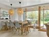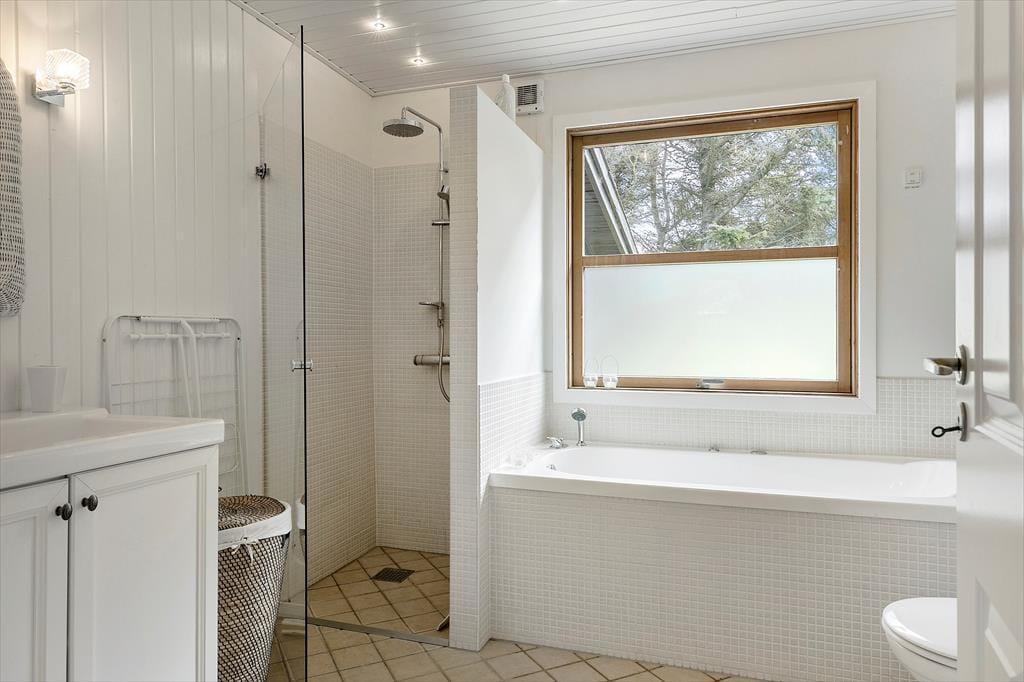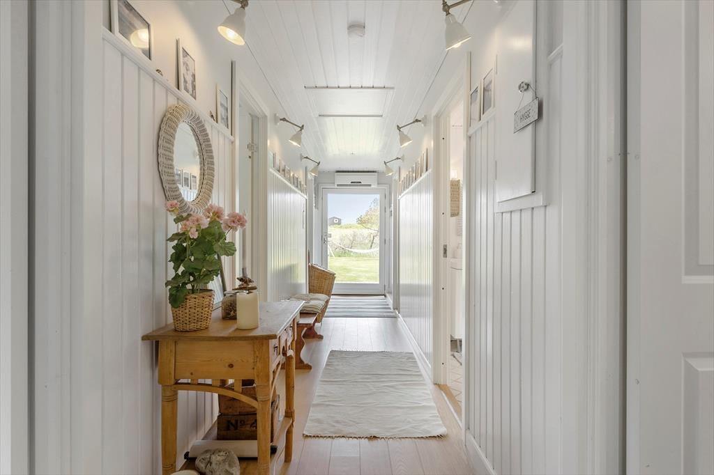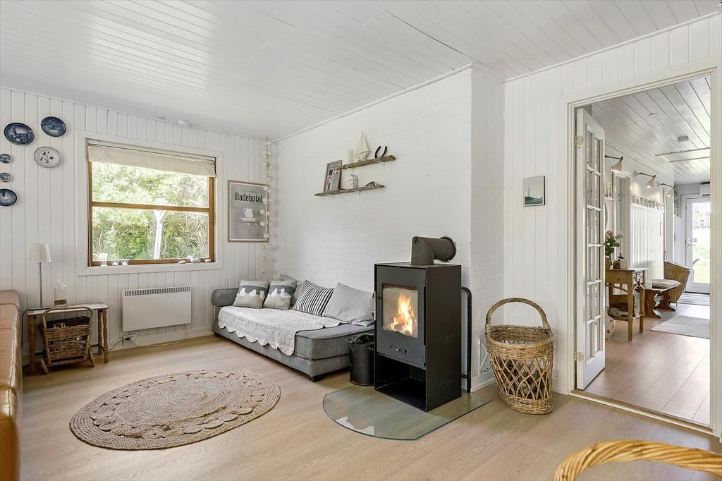 Sommerhusets lyse og moderne køkken ligger i åben forbindelse med stuen, hvorfra der er udgang til den overdækkede terrasse. Der er 4 soveværelser, alle med gode senge. Sommerhuset har to rummelige badeværelser, det ene med spabad. Med den gode plads er huset fint egnet til den store familie eller to familier som rejser sammen. Indretningen er lys og moderne med møbler i skøn og afslappet skandinavisk stil.