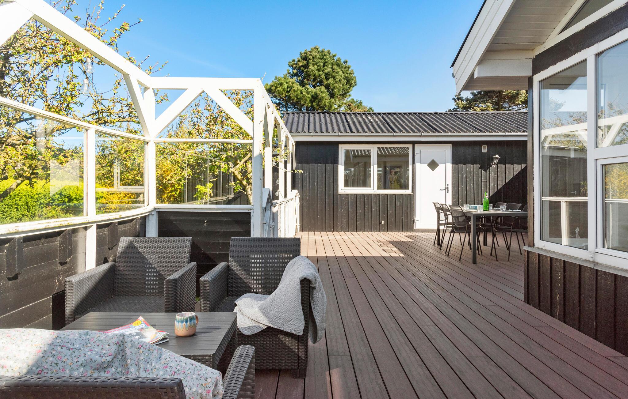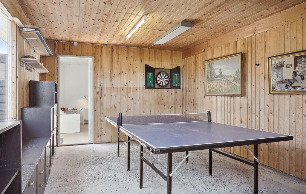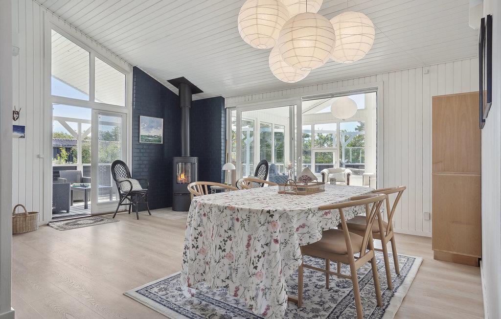 Velkommen til dette store, indbydende hus, hvor I får de skønneste rammer til en familieferie. Huset er lyst, klassisk og emmer af ro, så der er gode forhold til, at alle kan komme ned i tempo og slappe af. De store vinduer integrerer den grønne have i stuens atmosfære, hvilket giver jer mulighed for at nyde lyset og omgivelserne på alle årstider. Der er gode faciliteter i det store køkken, hvor I kan gøre madlavningen til et fællesprojekt, og skulle I trænge til at få varmen efter en lang gåtur, kan I tænde op i udestuens brændeovn. Hvis I trænger til lidt afveksling fra de stille aktiviteter, kan man snuppe et spil bordtennis.