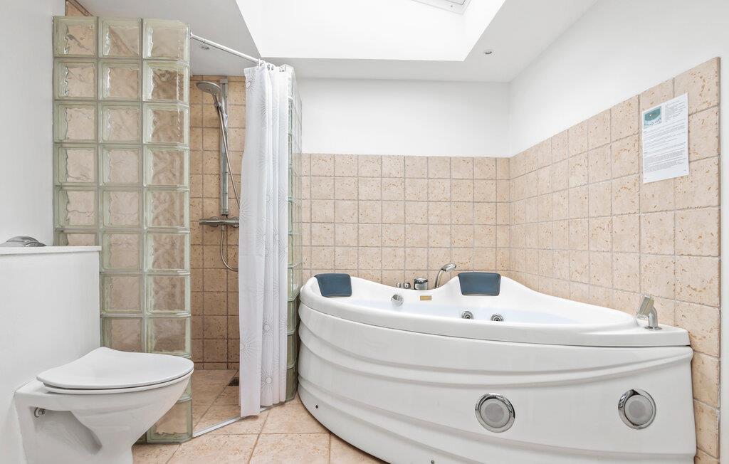 Badeværelse (nr. 1) - WC. Varmt og koldt vand. Bruser