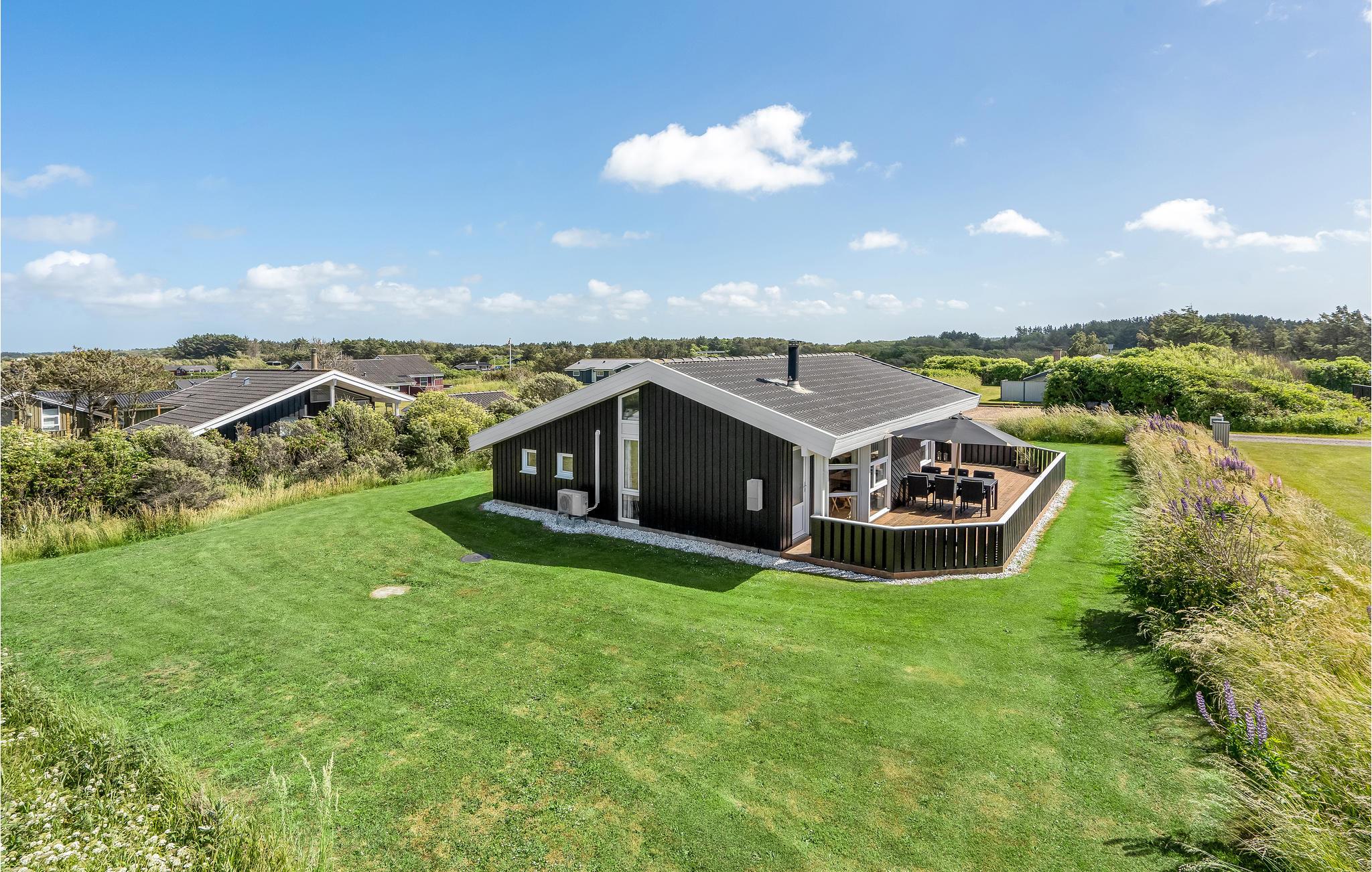 Velholdt feriehus tæt på Lønstrup med sauna, spabad og åbne terrasser på stor naturgrund.
