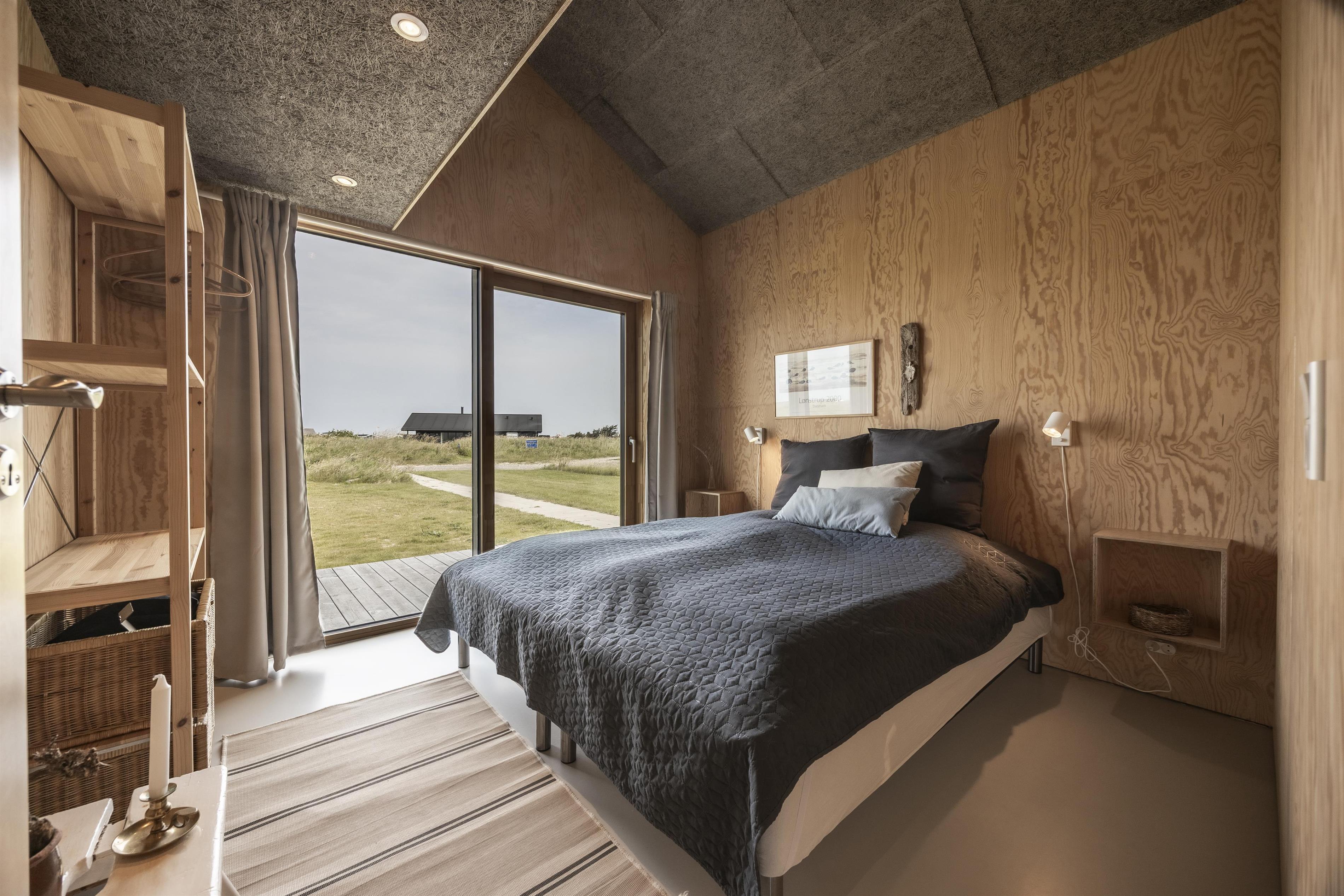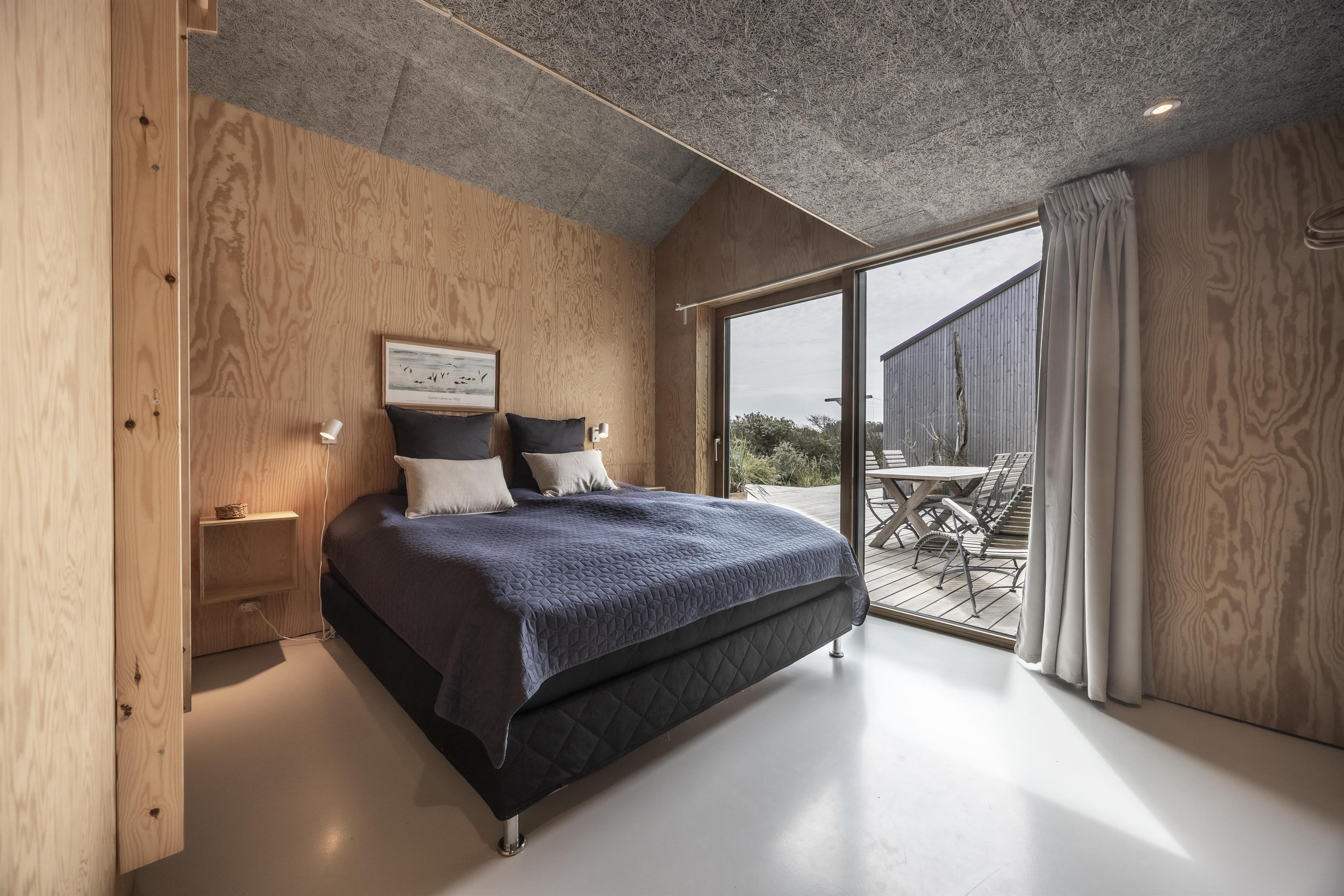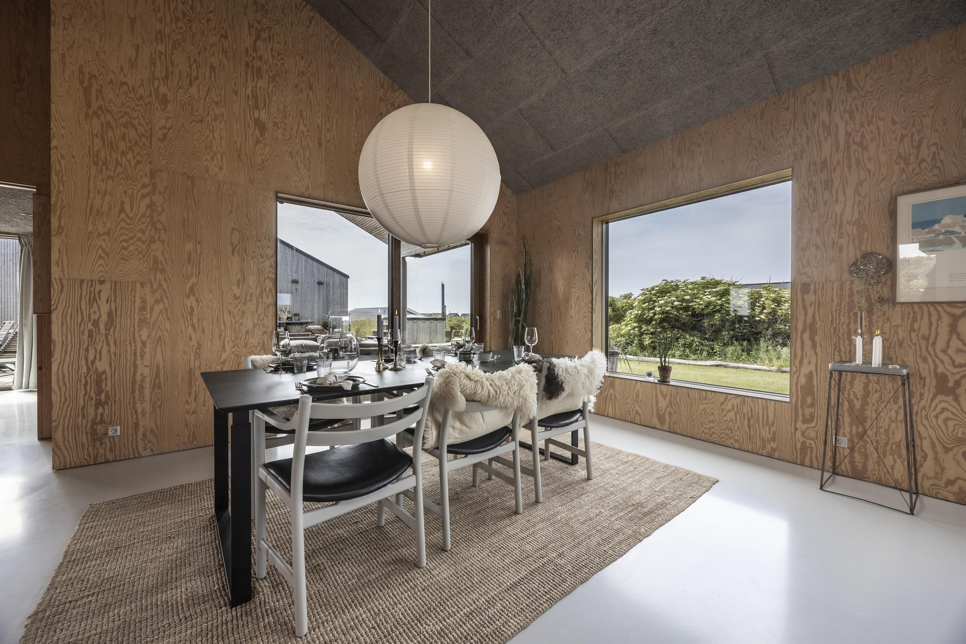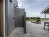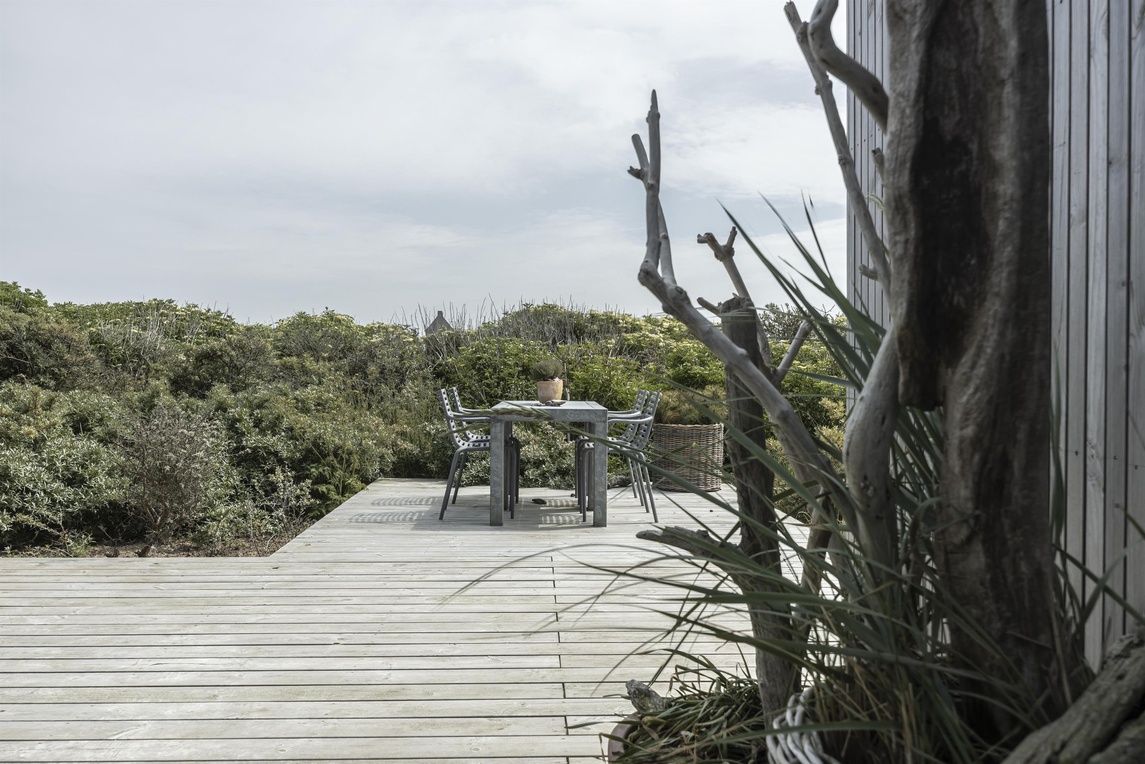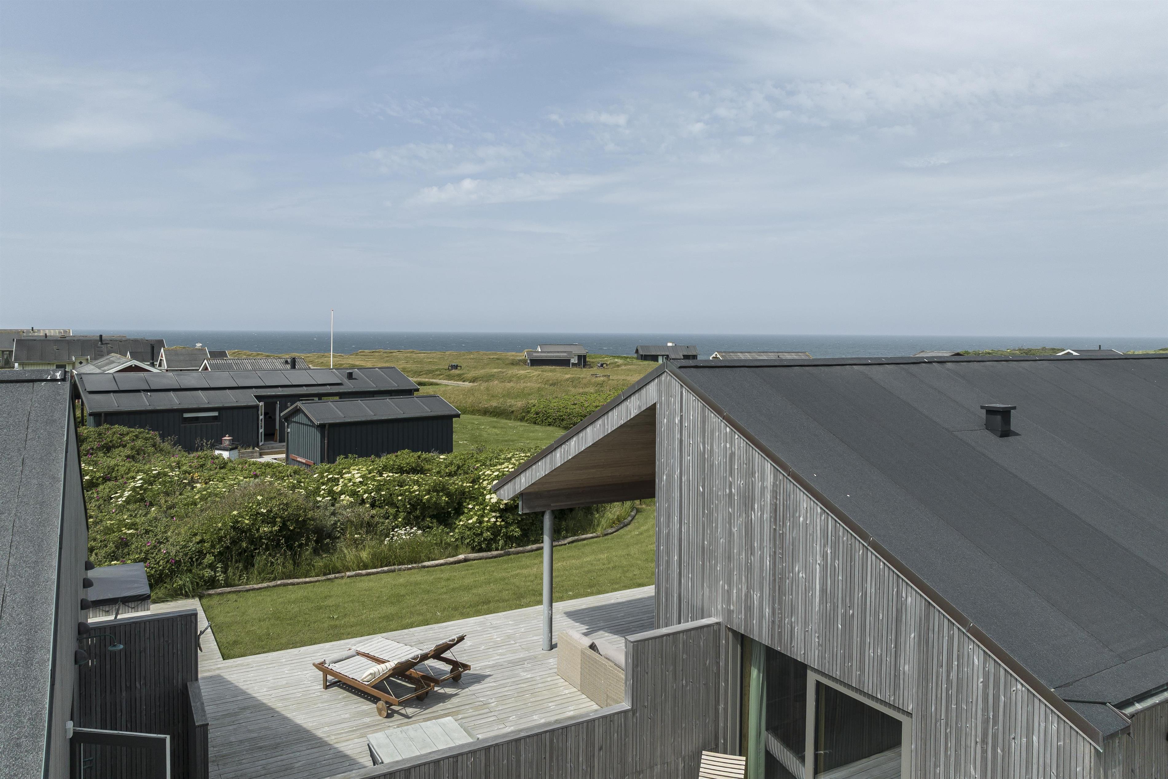 Udenfor er ferieoplevelsen mindst lige så gennemført. Huset er omgivet af store, indbydende terrasser – nogle overdækkede, andre i læ med sol det meste af dagen. Her er plads til både fælles måltider, stille læsestunder og hyggelige aftener med varme tæpper og terrassevarmere. Indretningen af de udendørs områder er inspireret af den omkringliggende natur og giver rig mulighed for både samvær og fordybelse. Lyt til bølgernes rytme og lad tankerne vandre. Tænd også gerne op i bålstedet bag feriehuset og grill skumfiduser, mens ilden knitrer i tusmørket.