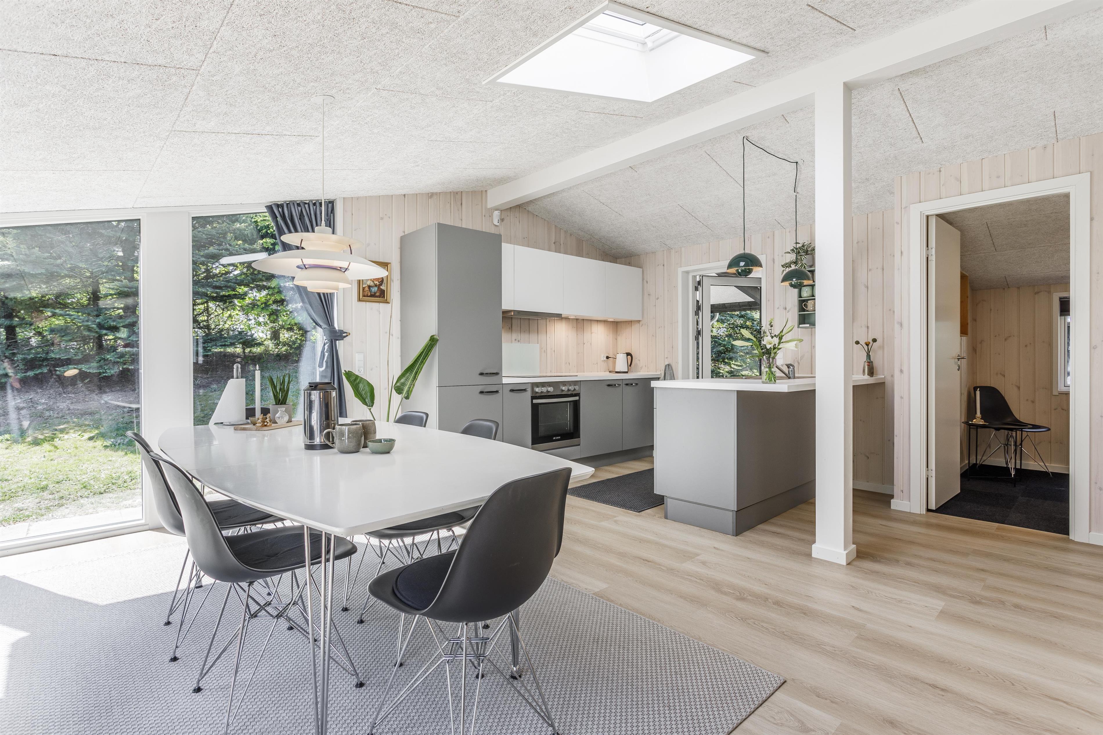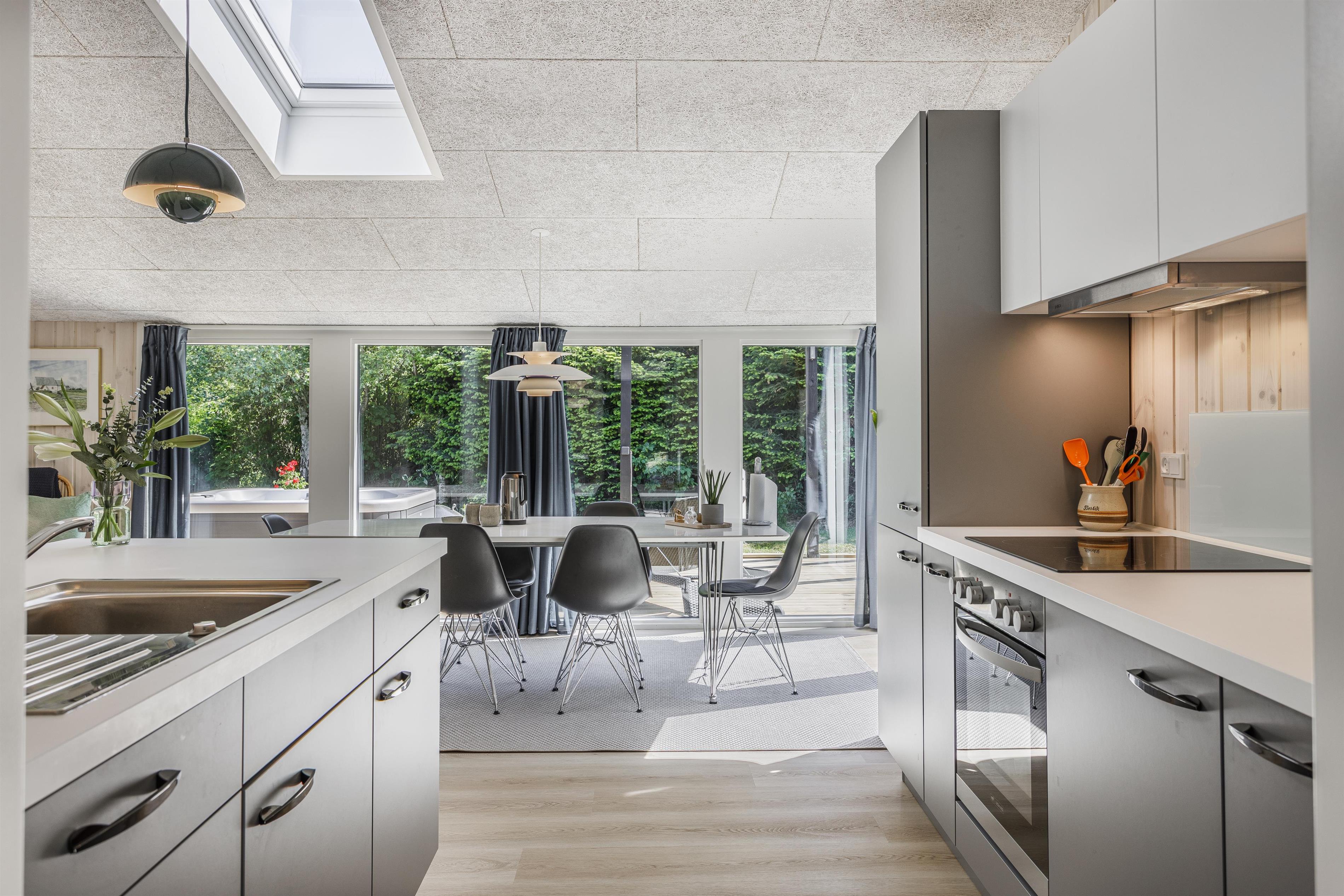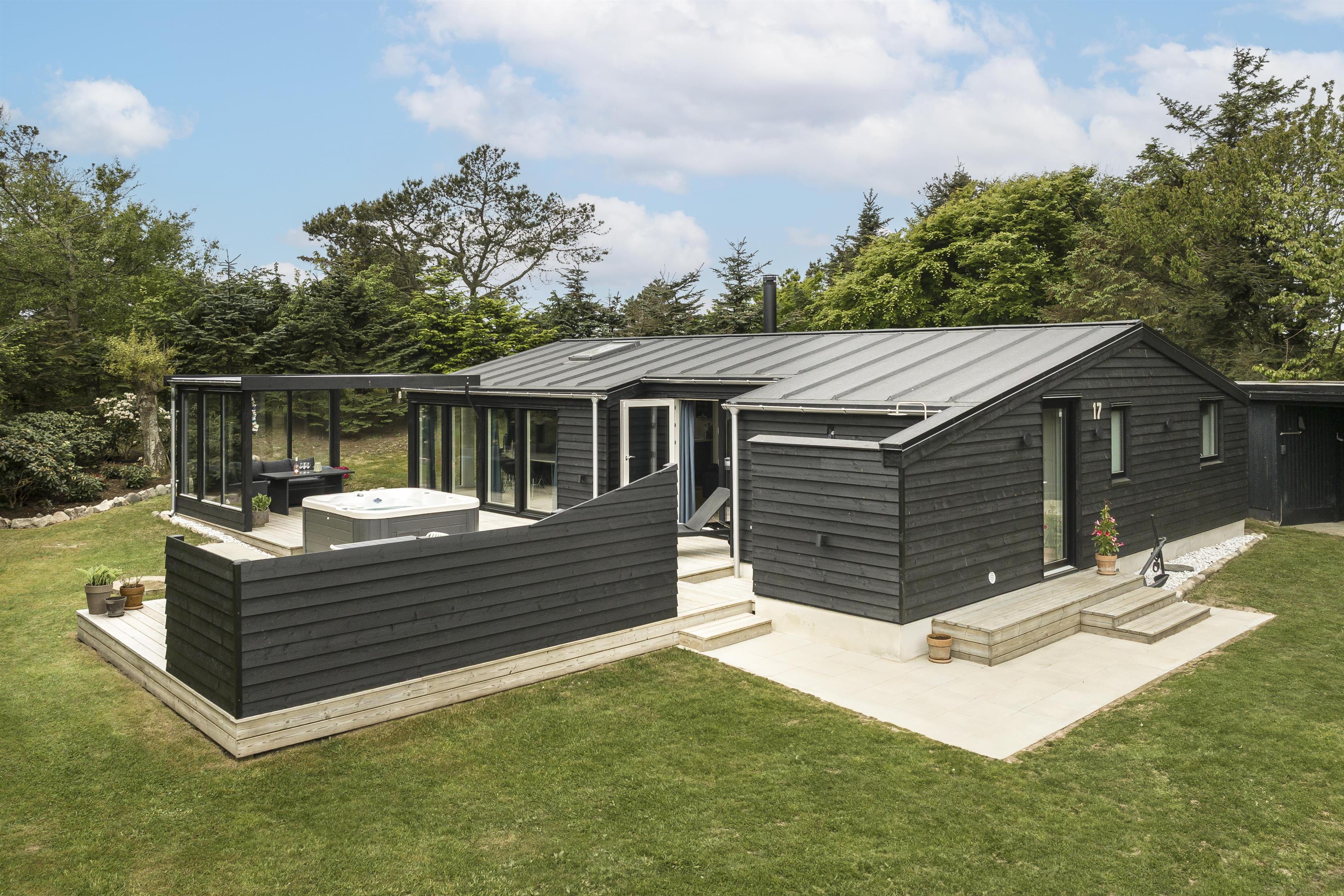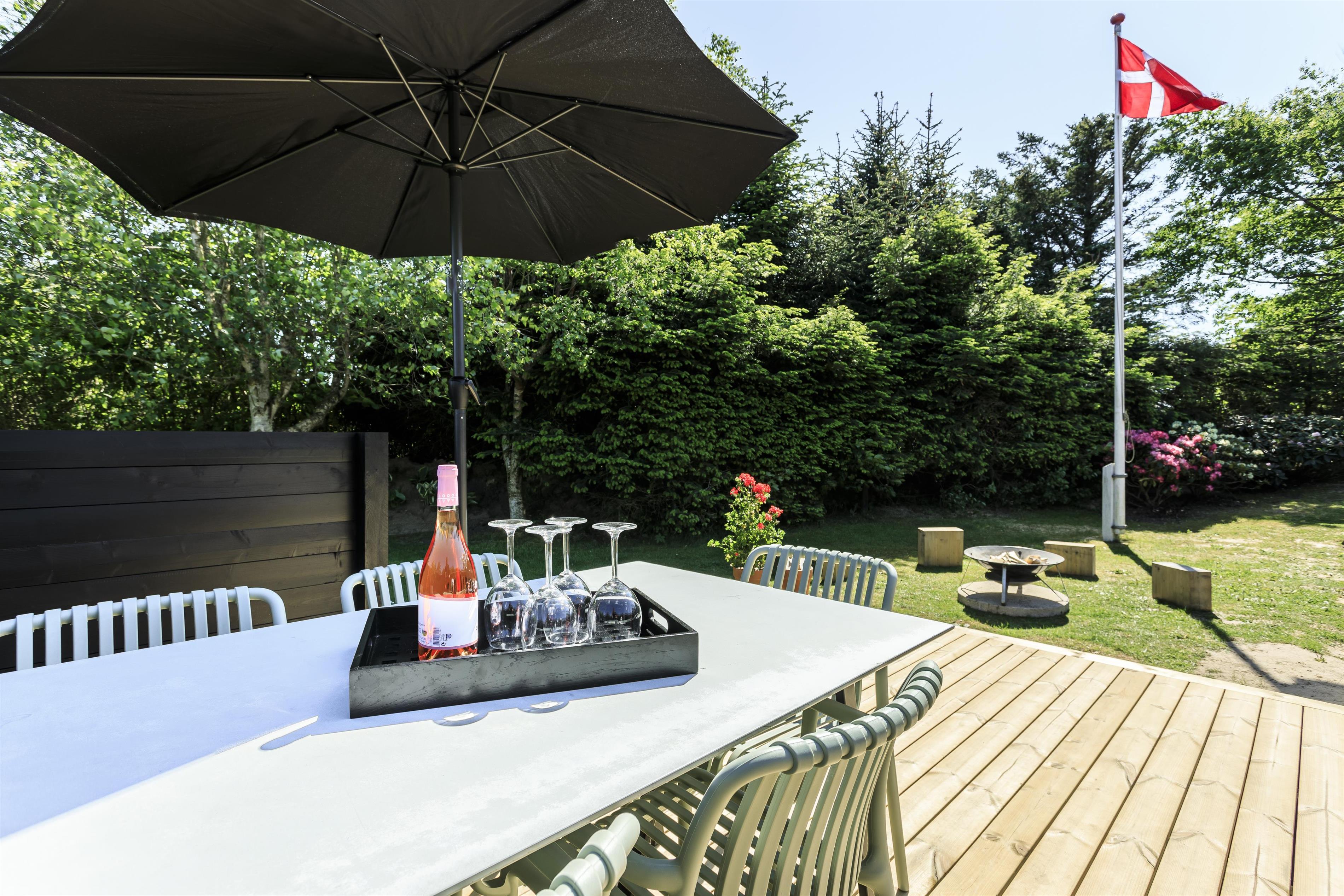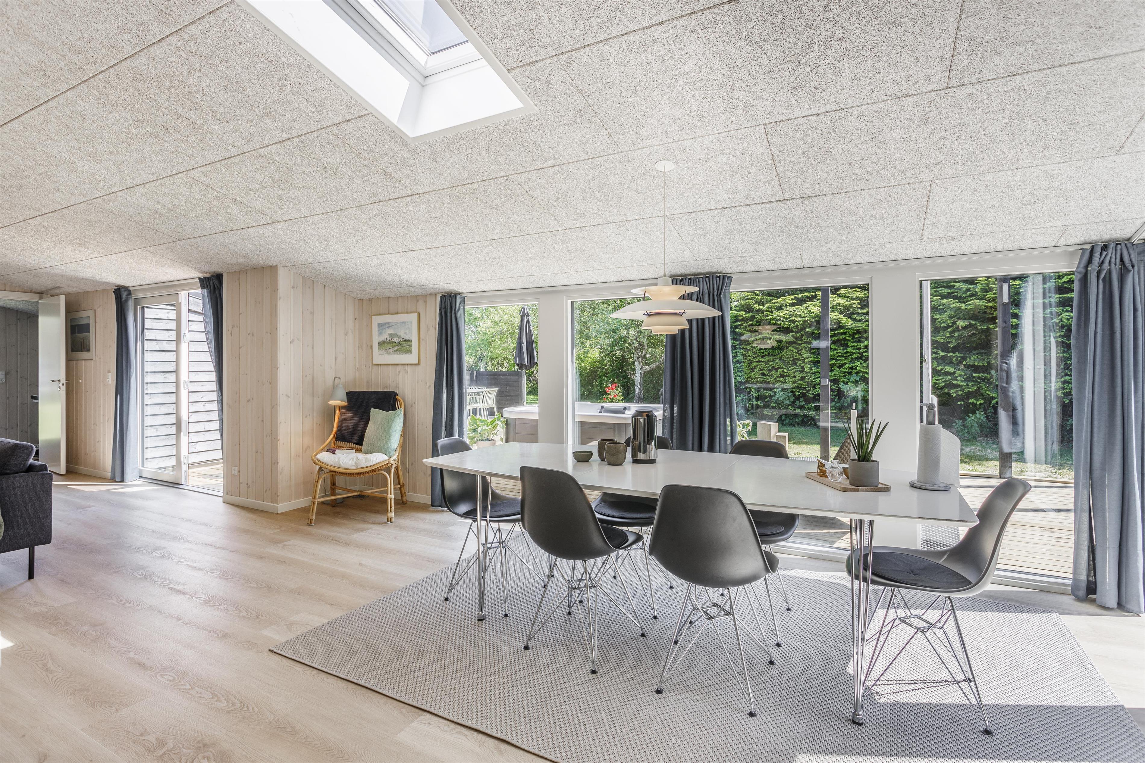 Prioriterer I frisk luft, luksus og komfort i jeres ferie, er dette helt nye feriehus det oplagte valg. Huset er yderst velindrettet både inde og ude. Her er højt til loftet og store gulv-til-loft-vinduespartier, som byder lyset ind i rummet. Feriehuset er indrettet med tre gode soveværelser samt et skønt badeværelse med gulvvarme. Dertil kommer et dejligt og rummeligt opholdsrum i åben forbindelse med køkkenet. Her er alt, hvad der skal bruges for en vellykket ferie. Der er rig mulighed for at samles omkring spisebordet til en spilaften eller sætte en god film på tv'et, hvis ikke vejret tillader, at man nyder de skønne terrasser, der omkranser huset. Fra opholdsrummet er der adgang til flere skønne terrasseområder, så der er rig mulighed for at følge solens stråler hele dagen lang eller søge læ for den til tider barske vestenvind. Tag en pause på solsengen med en god bog, eller hop i boblerne i det udendørs spabad og nyd vandmassagen og varmen herfra.