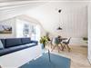 Høloftet kan imødekomme 5 gæster i 2 soveværelser med en dobbeltseng i hvert værelse samt 1 enkeltseng i stuen - alle senge er boksmadrasser med tykke topmadrasser, der sikrer en god nattesøvn efter en dag med aktiviteter i området. Derudover er der mulighed for 1 ekstra opredning i et rum med gennemgang. For dem, der ønsker ekstra forkælelse, tilbyder lejligheden en lille sauna og et karbad på badeværelset, der skaber en spa-agtig atmosfære. I denne lejlighed må man ikke have hund med!