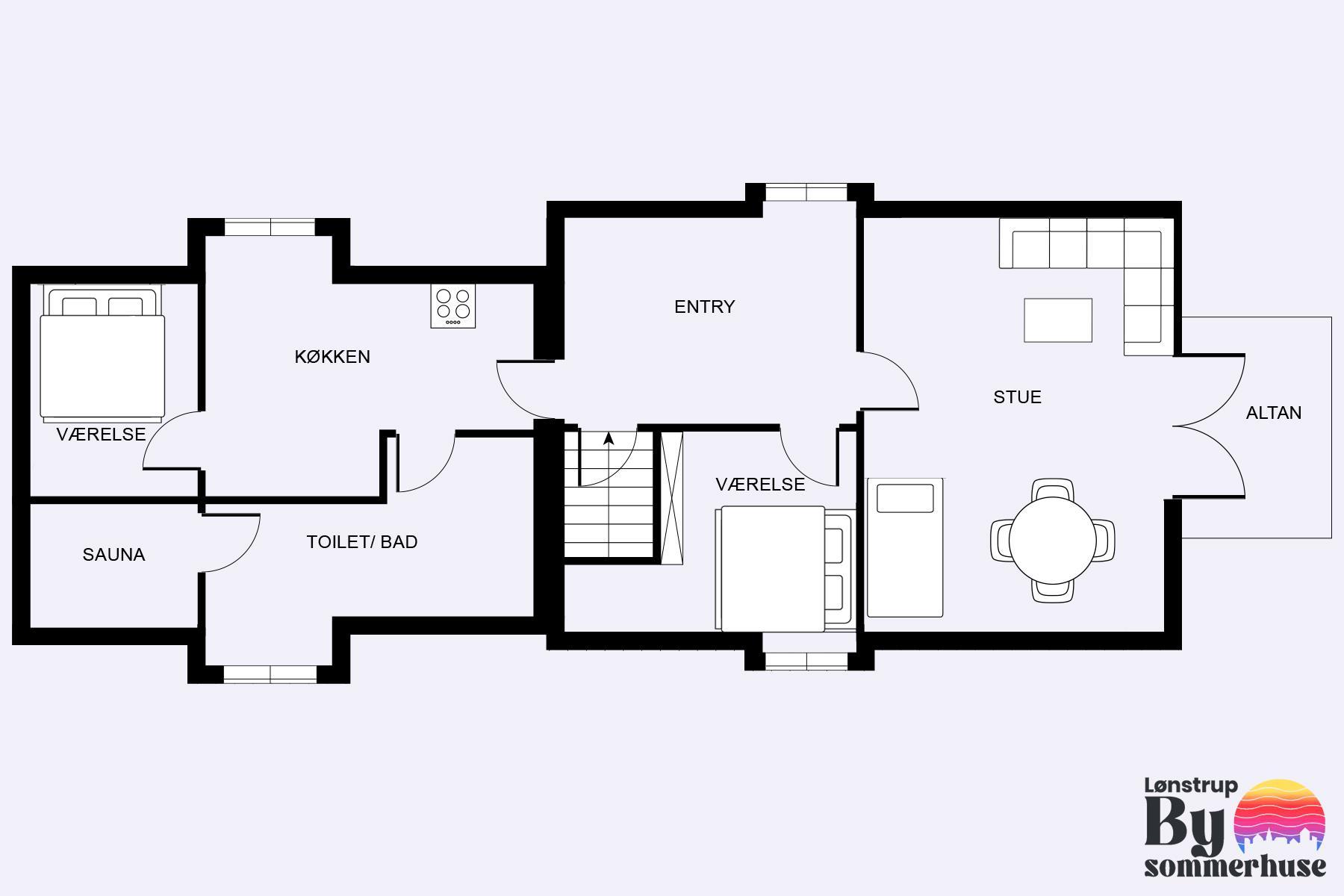 Altanen udgør områdets mest solbeskinnede opholdssted. Herfra kan I nyde betagende solopgange og en udsigt over marker og Vennebjerg Kirke. Denne ferielejlighed er helt oplagt at leje, hvis I søger såvel fred og ro samt masser af aktiviteter tæt på strand og ferieby.