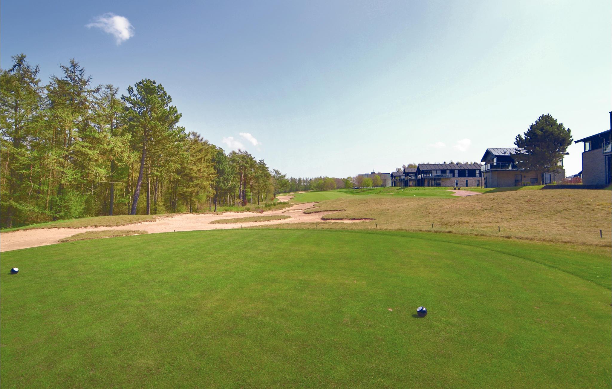 Flot feriehus på Lübker Resort med udsigt over golfbanen og nærhed til Djurs Sommerland.