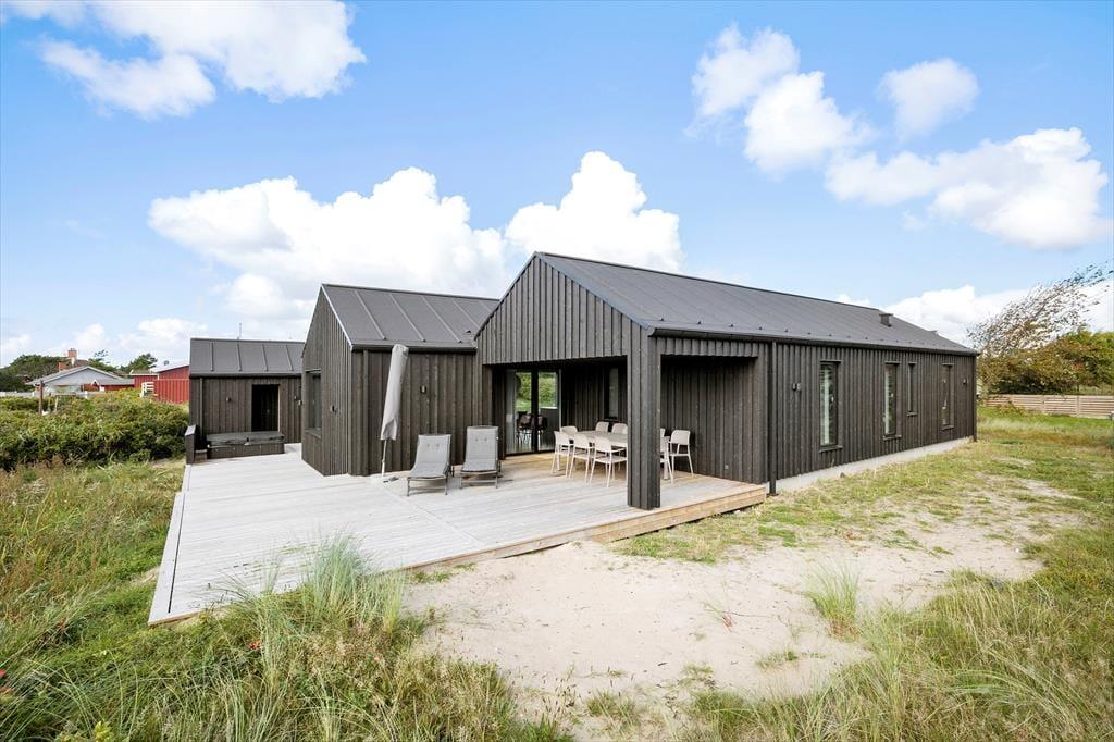 Hvis du elsker moderne arkitektur, elegant design og tilbagelænet livsnyderi, kan du glæde dig til at holde ferie på Lakolk 124. Her på adressen finder du nemlig et rigtigt kvalitetssommerhus, der er opført i 2024 og udstyret med de lækreste faciliteter – inklusiv et udendørs wellness-miljø på den store terrasse.