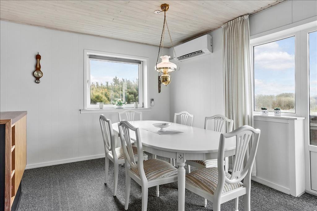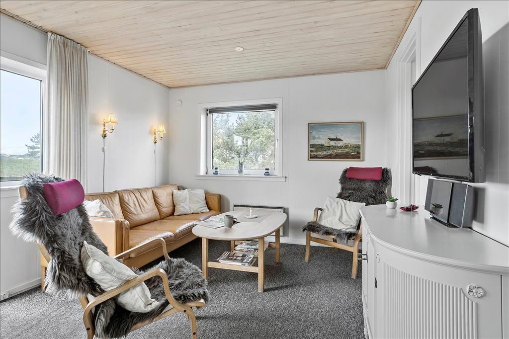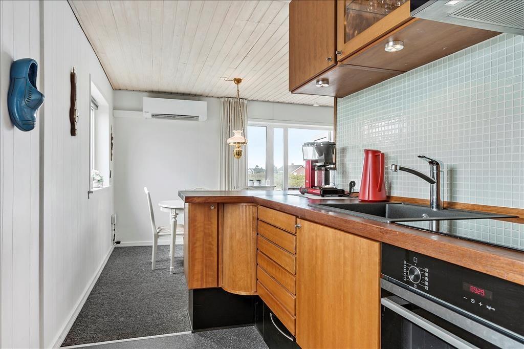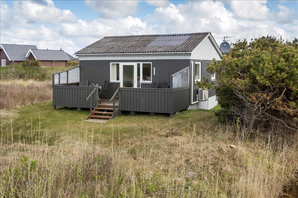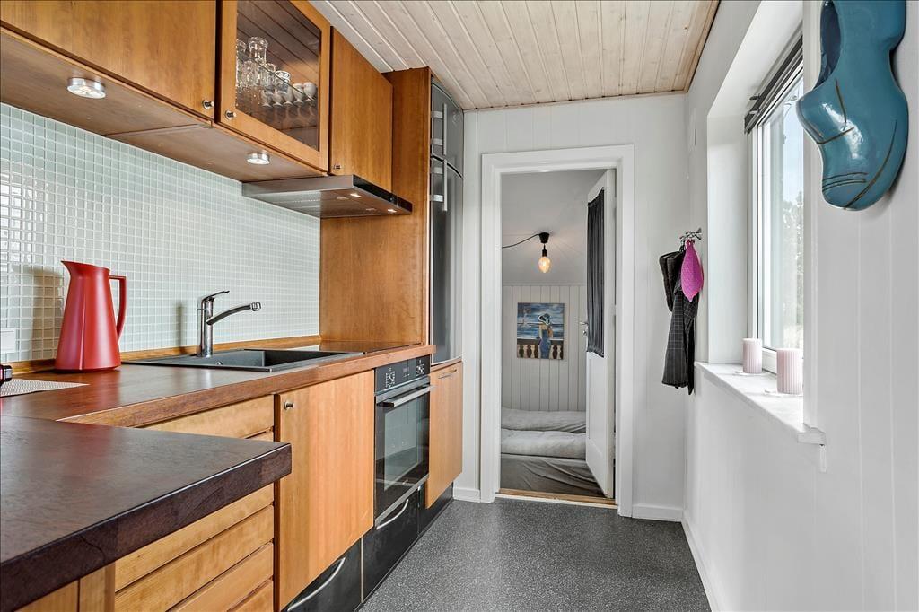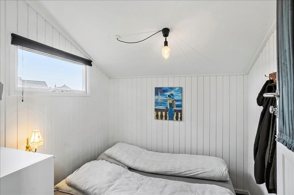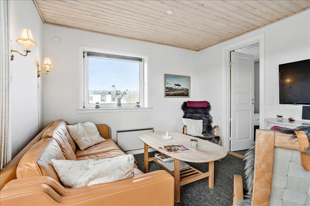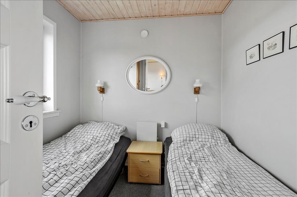 Med sine 45 m2 kan sommerhuset måske ikke prale med sin størrelse. Planløsningen er til gengæld god med to soveværelser, et badeværelse og en stue med åbent køkken. Og hvem har også brug for mere plads, når I er taget i sommerhus for at hygge jer sammen og med masser af tid til at spise morgenmad, spille kort, tage på udflugter og snakke til langt ud på aftenen. På det ene soveværelse står en dobbeltseng og på det andet to enkeltsenge, så I kan altså holde ferie op til fire personer her i huset. Værd at bemærke er det pæne badeværelse, og i stuen er der varmepumpe med køl såvel som fladskærms-tv med Chromecast.