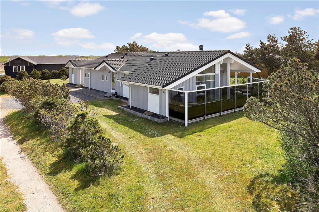 Dette kvalitetssommerhus er lækkert indrettet med spa og sauna på det ene badeværelse, brændeovn i stuen og et solbeskinnet terrassemiljø på den 1200 m2 store grund. Som endnu et plus ligger det i kort gåafstand fra Lakolk Strand – så kort sagt er det et skønt sted at holde ferie.