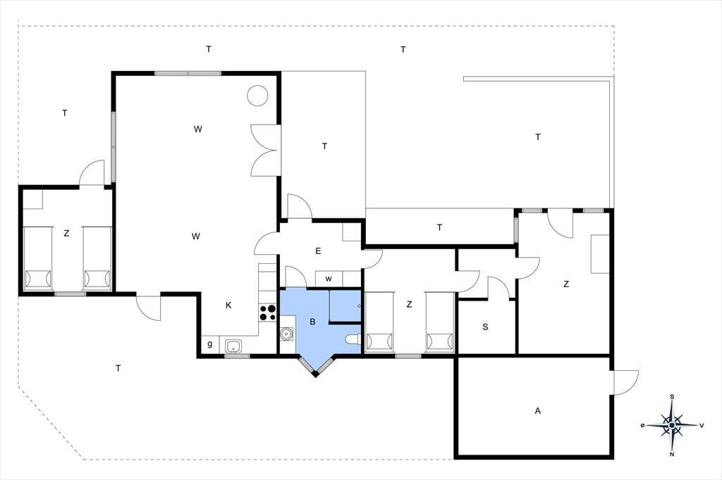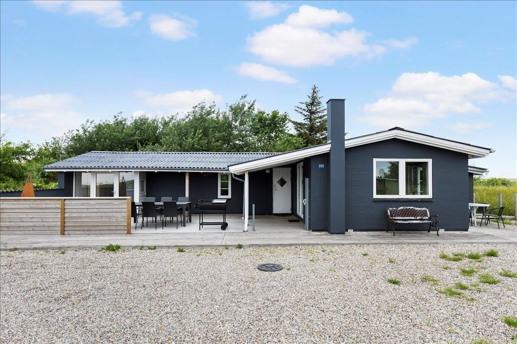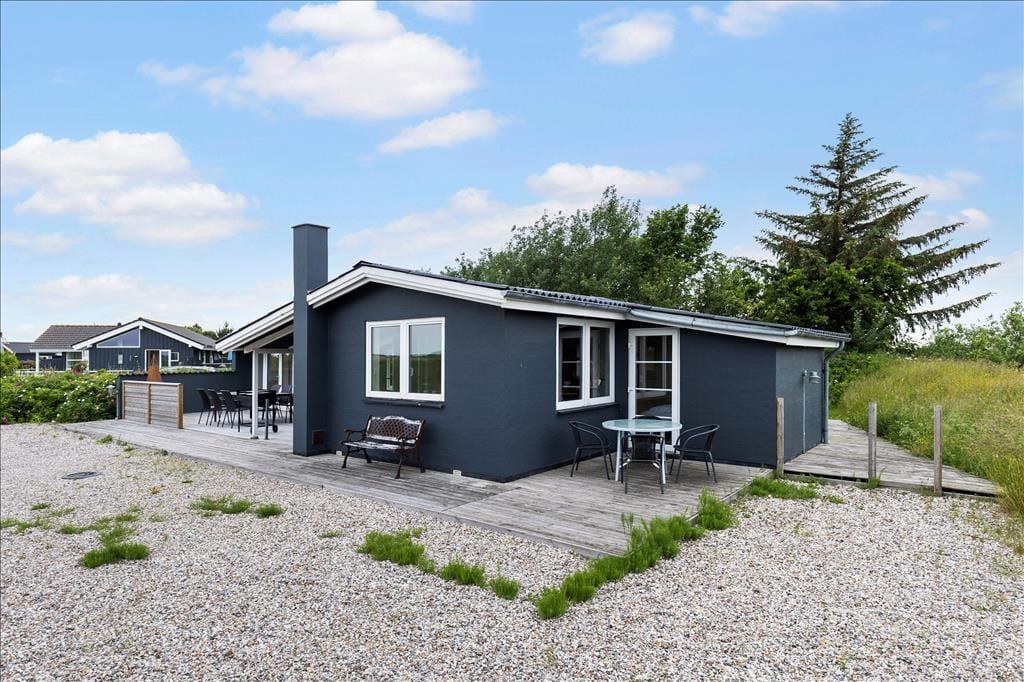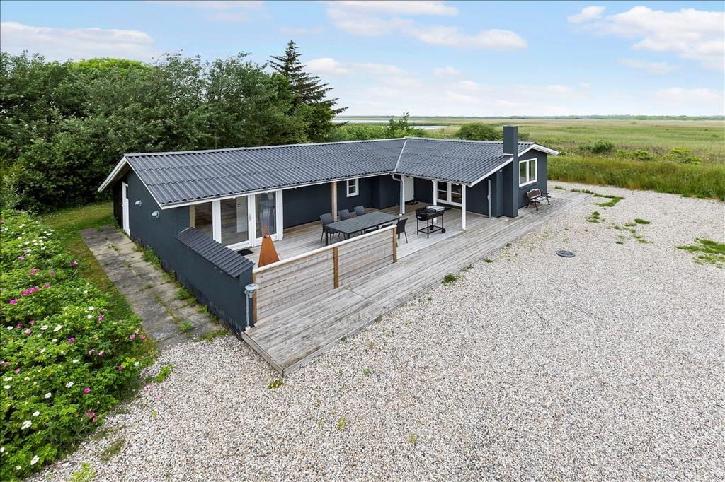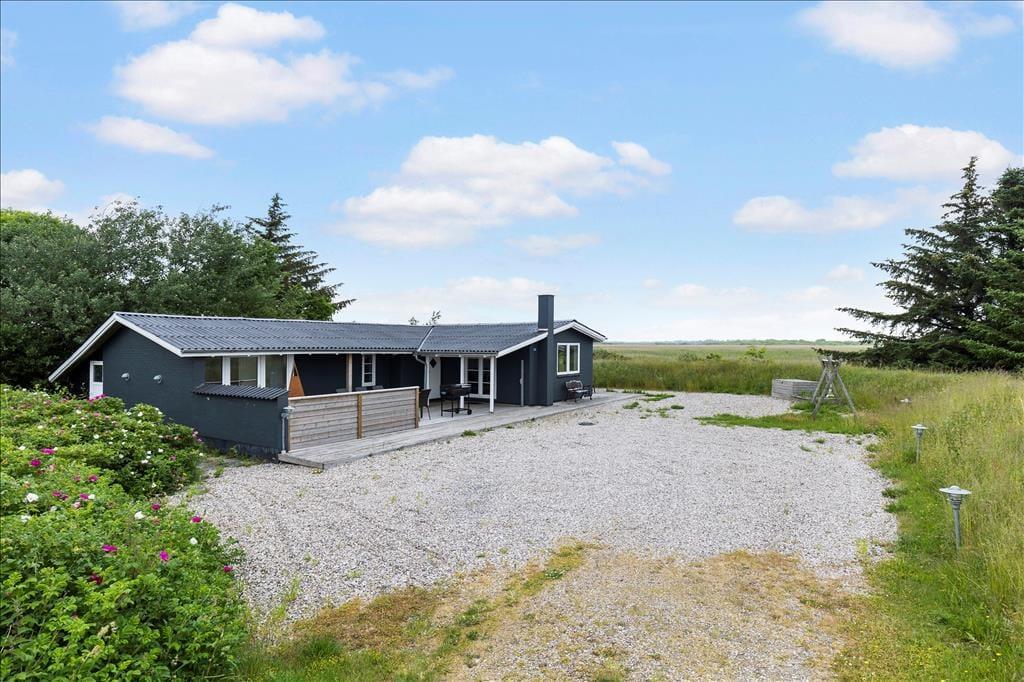 Rundt om sommerhuset breder en dejlig træterrasse sig, så I har flere opholdspladser at vælge imellem, når I vil slappe af ude i det fri. Udsigten over det åbne landskab og søen er bedst på sommerhusets østside, mens det sydvendte terrasseområde er solrigt en stor del af dagen. På grunden er der godt med parkeringsplads på grus belægningen, og til de yngste familiemedlemmer er der gynger.
