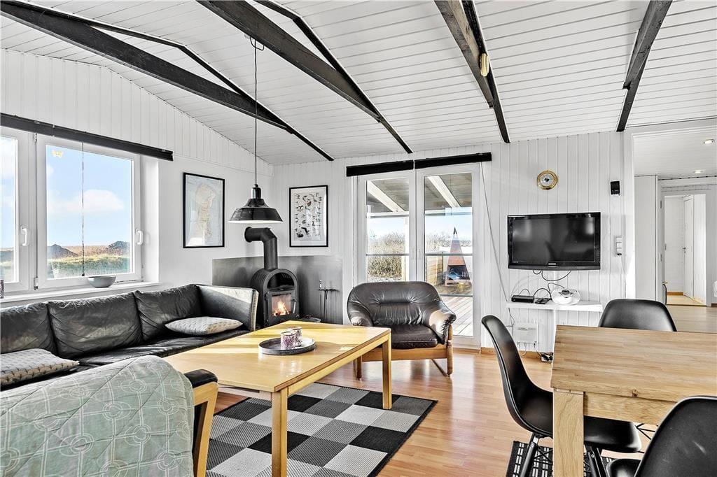 Den fantastiske beliggenhed midt i naturen gør huset til det perfekte sted at koble af og nyde den friske luft. Samtidig er det et ideelt sted at tilbringe kvalitetstid med familie og venner. Opholdsrummet, med sin velovervejede planløsning, skaber en hyggelig atmosfære. Huset har plads til 4 gæster: Det har 2 soveværelser og et ekstra rum med en sovesofa. Derudover er der et moderne badeværelse, en sauna og en hyggelig stue med integreret køkken fra 2023. Brændeovnen og varmepumpen sørger for, at du kan føle dig godt tilpas året rundt. Efter lange gåture på stranden kan du slappe af i saunaen.